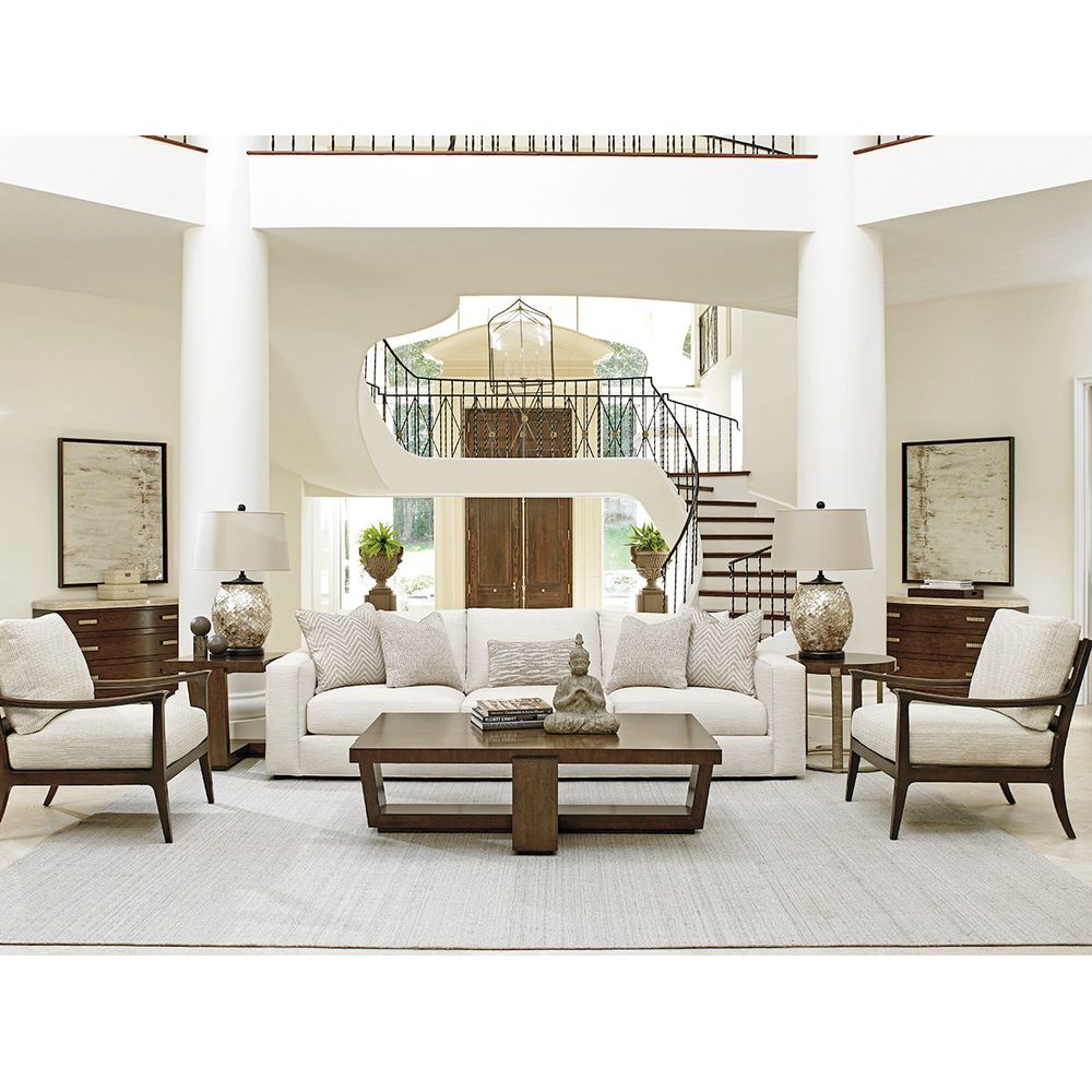 Marketing Copy: Contemporary design today has taken on a decidedly casual tone. The look is clean and sophisticated, thoughtfully curated with great emphasis on comfort. Visual impact is achieved through statement pieces and an elegant blending of finish and materials. Crafted from cathedral cherry veneers and mahogany solids, design in Laurel Canyon feature strong architectural lines in a mocha finish with soft gray undertones. Metal bases are finished in hand-burnished silver leaf, with silver travertine tops. Plush upholstered seating offers generous scale, highlighted by textural fabrics, contemporary patterns and soft neutral palettes. The vibe is casual, but the design aesthetic is one of refined self-expression, delivering a truly remarkable look.