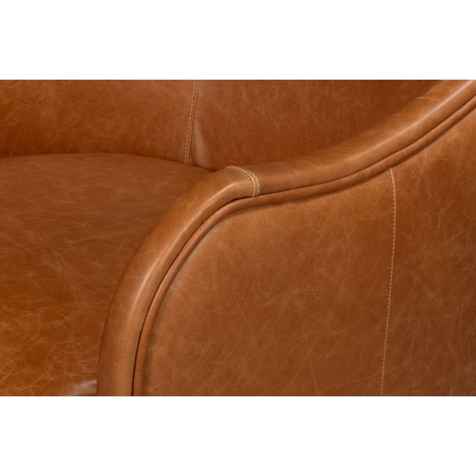 Introducing our Braxton Leather Swivel Chair, blending classic and contemporary design. Upholstered in rich Columbia Brown leather, it epitomizes transitional elegance, offering both style and comfort.