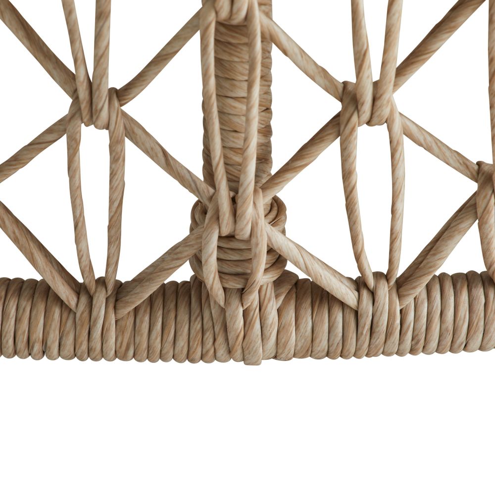 This drum-shaped table lends an abstract allure to your outdoor lounge space. Woven of twisted synthetic rattan in dune, the lattice base projects an intriguing play of light and shadow. Topped with a matching teak wood surface, it is both coastal-inspired and contemporary. Finish will vary.