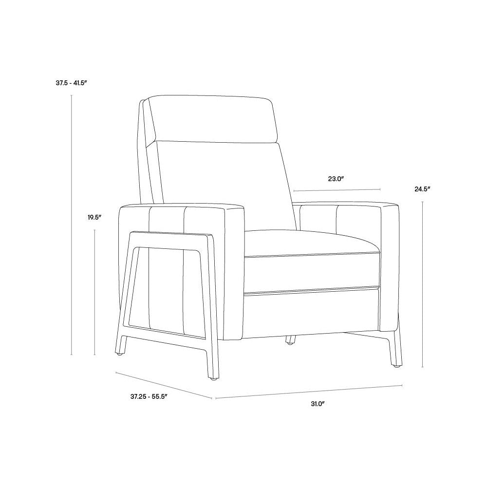 Description: A handsome, modern recliner that will allow guests to sit back and relax. Features a comfortable seat in shalimar tabacco leather with a push back reclining mechanism. For added dimension, this recliner also features an exposed dark brown solid oak wood frame.