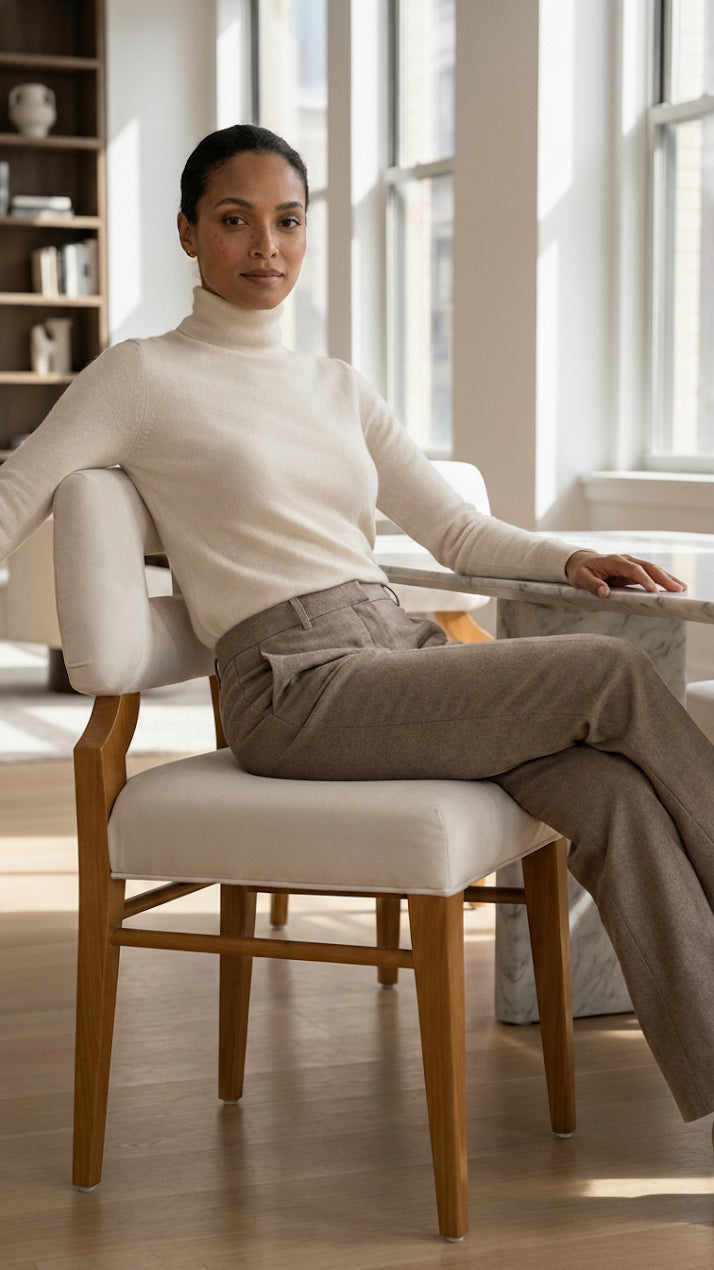 Capturing the elegance of Hollywood's golden era, this Side Chair adds classic sophistication to any dining room. Drawing inspiration from the legendary chairs showcased in the 1953 film How to Marry a Millionaire, famously associated with Lauren Bacall and Marilyn Monroe, this design merges mid-century style with contemporary comfort. Its neutral beige fabric and natural acacia wood frame provide a warm and adaptable aesthetic, making it an exceptional choice for both entertaining guests and everyday dining.