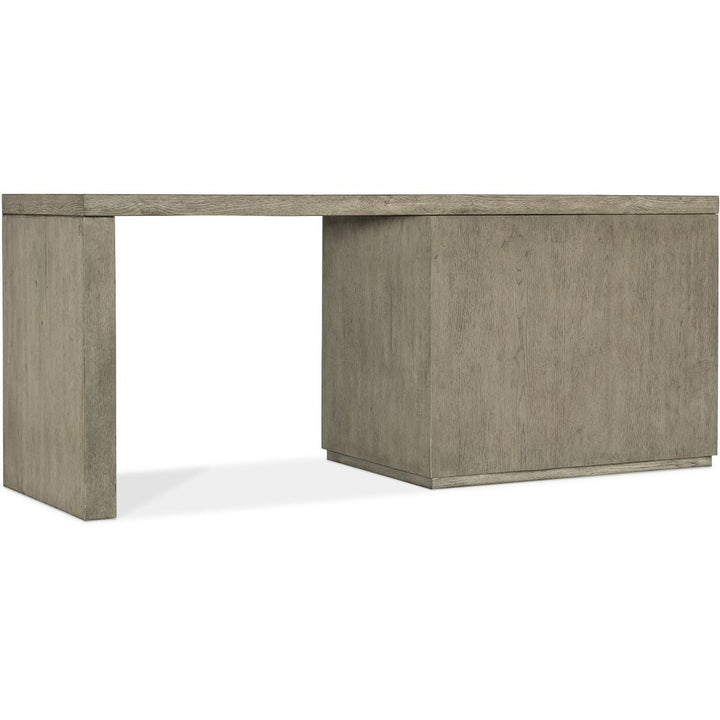 Capturing the essence of nature's organic color palette on a clean-lined, simple silhouette, the Linville Falls Desk is crafted of Oak Veneers with a soft smoked gray Mink finish. The 72-inch wide top is flanked on one side by a leg end panel and on the other by a lateral file with a top utility drawer and a lower locking file drawer with pendaflex filing system. The desk is fully finished on the back so it can be floated in a room. Capturing the essence of nature's organic color palette and the aura of a rustic mountain cottage, Hooker Furniture introduces the Linville Falls collection. The whole home collection is designed for younger consumers looking for casual and contemporary furniture. Characterized by its rustic, weathered finish and clean lines paired with organic grain patterns, Linville Falls is constructed with split oak solids and veneers and has an overall organic aesthetic. It is featured in a soft Smoked Gray finish mixed with a Charred Black finish that is achieved through Shou Sugi Ban, a Japanese technique that creates an elegant burnt wood look. Its moderate scaling and fresh silhouettes offer a refreshing juxtaposition mixing old with new.