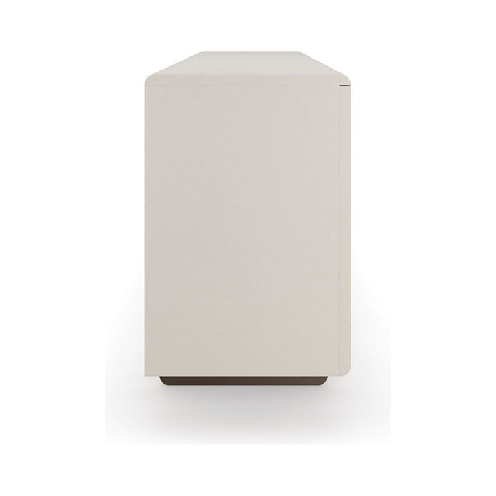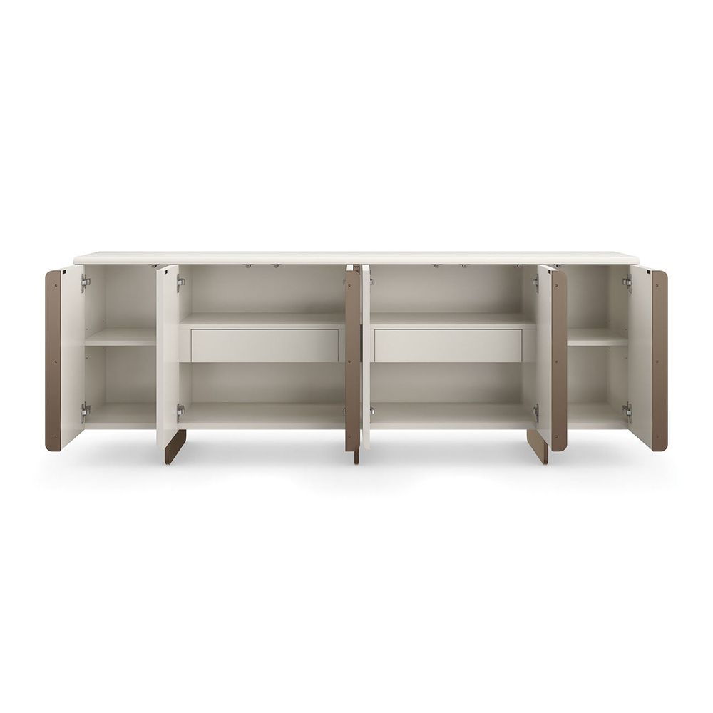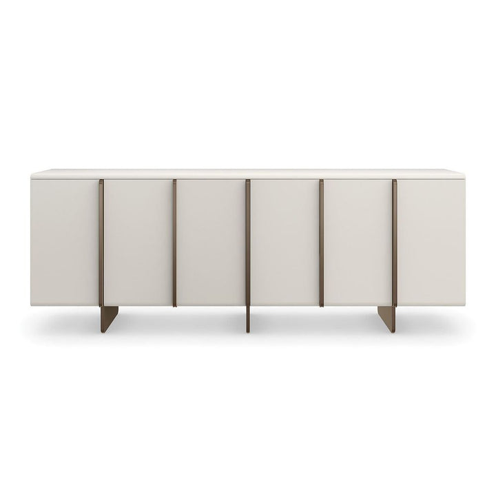 An innovative textured adobe finish lends depth and an organic element to this modern take on a 1940s-era Italian design. Sensory and sophisticated, its simple linear form features gently rounded edges and soft-close doors trimmed in a warmly accentuating, Lucent Bronze Metallic metal. Versatile in form and function, it offers a chic storage solution for dining and living rooms, hallways and home offices.