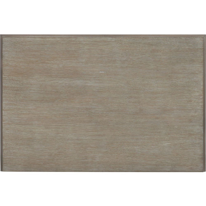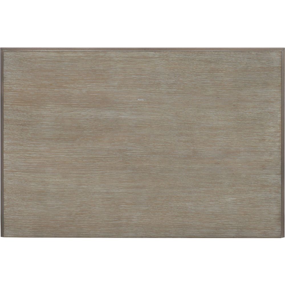 Description: Sleek and sophisticated, the Affinity Leg Nightstand blends a simple one-drawer top with a pewter and antique white bar pull with an intriguing base combining rounded X-motif legs and a center stretcher. Crafted of Oak Veneers, the nightstand is finished in a wire-brushed greige and antique white finish.