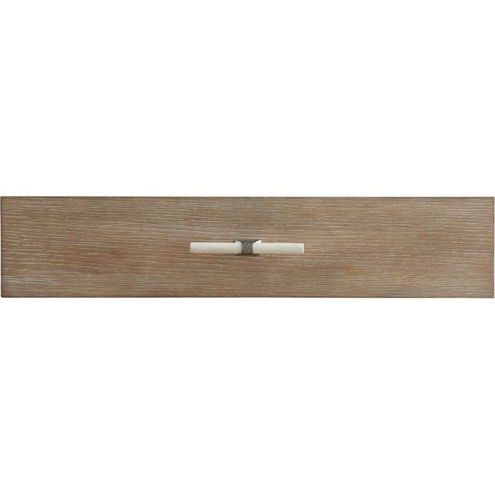Features: One drawer; Levelers; Pewter and cream bar pull