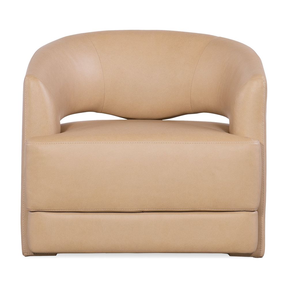 Features: Swivel motion; Fully leather upholstered; Barrel back style