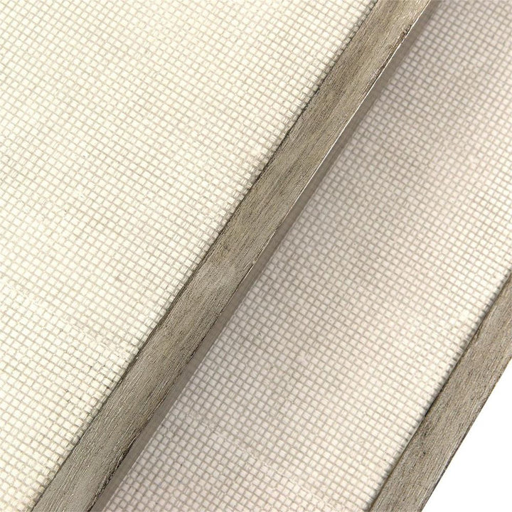 Description: This nest of two tables is inlaid in a woven-patterned resin in antique beluga, with solid oak edges in silver white.