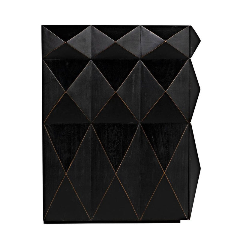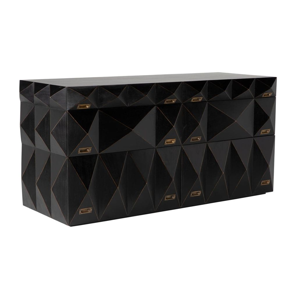 A bold six drawer dresser artisan crafted of mahogany and backed in brass; it is finished in layers of our hand rubbed black finish.