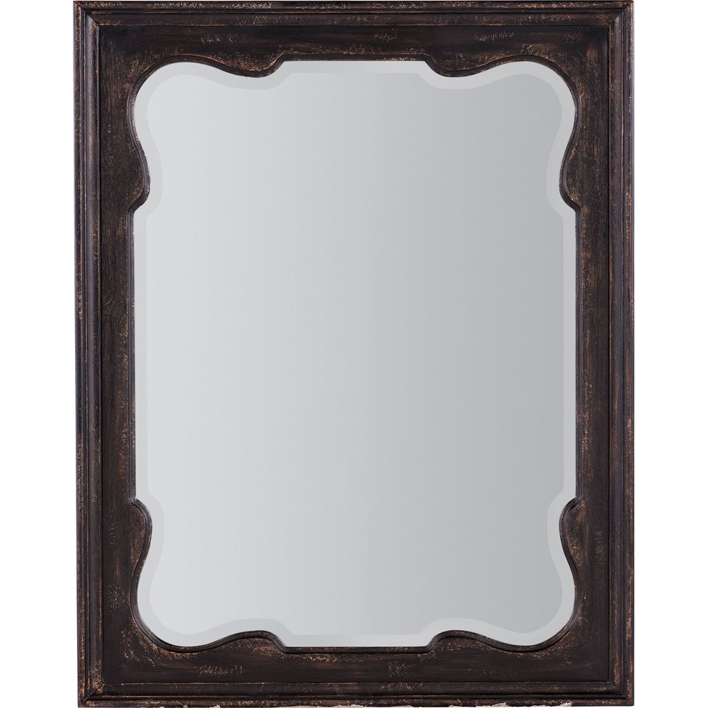 Description: Framed with a delicate scalloped interior edge, the Americana Landscape Mirror reflects a simpler time. With beveled mirror glass, the wood frame is finished in the time-worn Molasses, representing the natural wear one might expect of pieces passed down through the family over time revealing the rich oak character beneath.