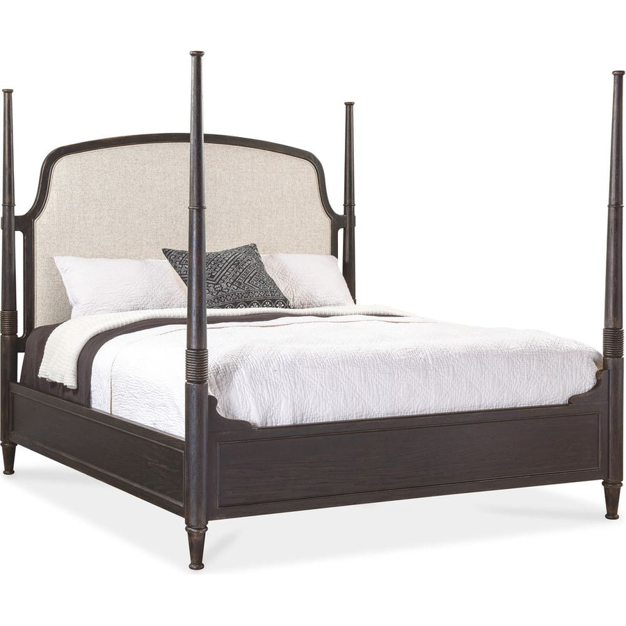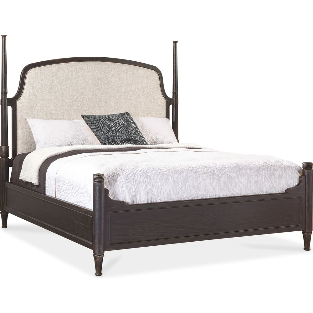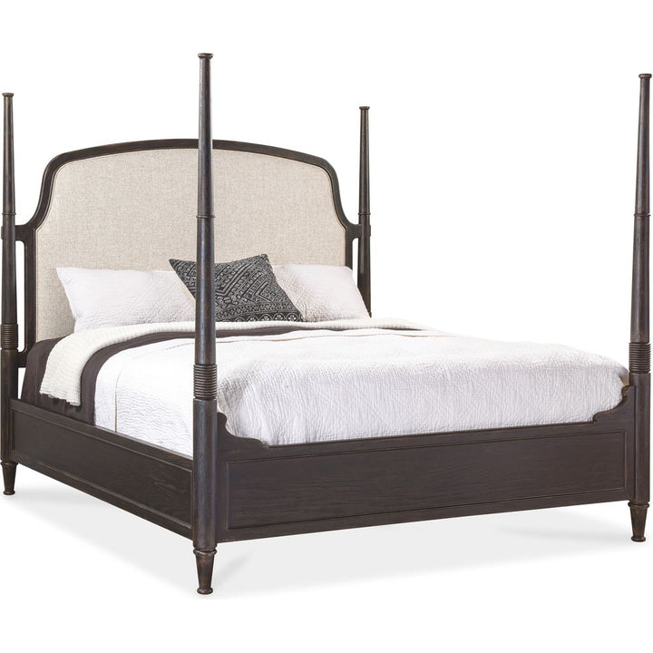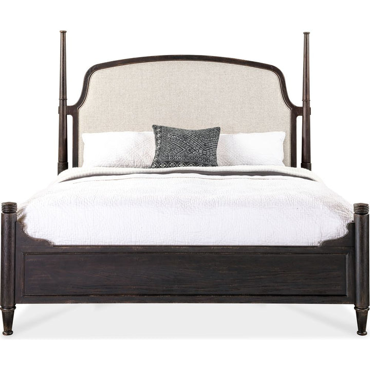 Americana Queen Upholstered Poster Bed - Dark Wood