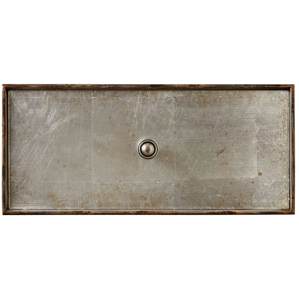 Description: Enticing glam meets cool modern wit in the Arabella Nightstand. Finished in shimmery eglomise with heavily painted charcoal finish on the exposed wood edges, the top drawer has a drop-in felt liner, and the bottom drawer has a cedar bottom. There is one live USB port and three electrical outlets. One touch switch is located on each side of the case; there is a light underneath and a cord clip.