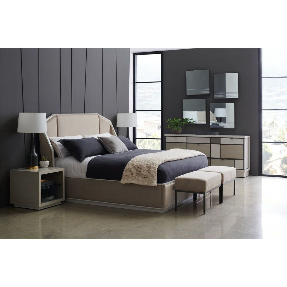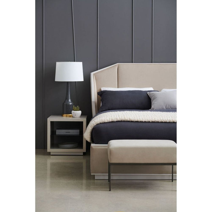 Destined to be remembered, this expressive bed bench is as functional as it is fashion-forward. Its upholstered seat is plush yet supportive and framed in metal with a Zinc Oxide finish. Pencil legs give it a modern vibe while providing solid strength. Place one or two at the foot of the bed or anywhere you want a bit more function and a lot more style.
