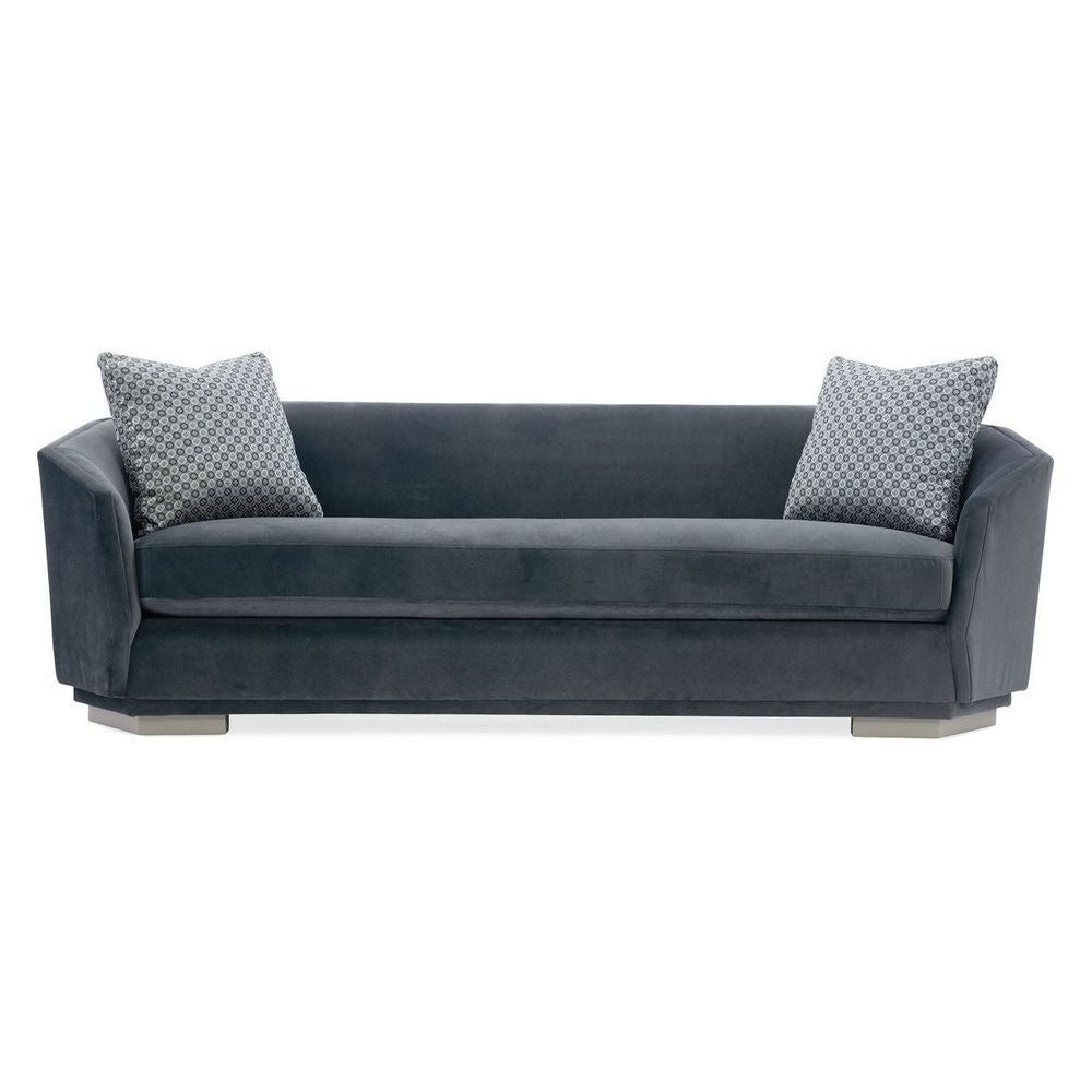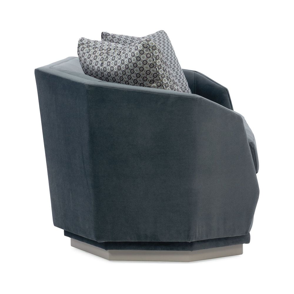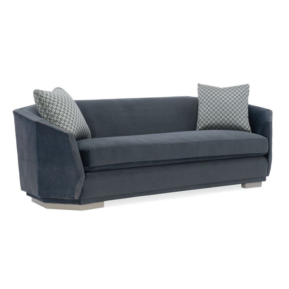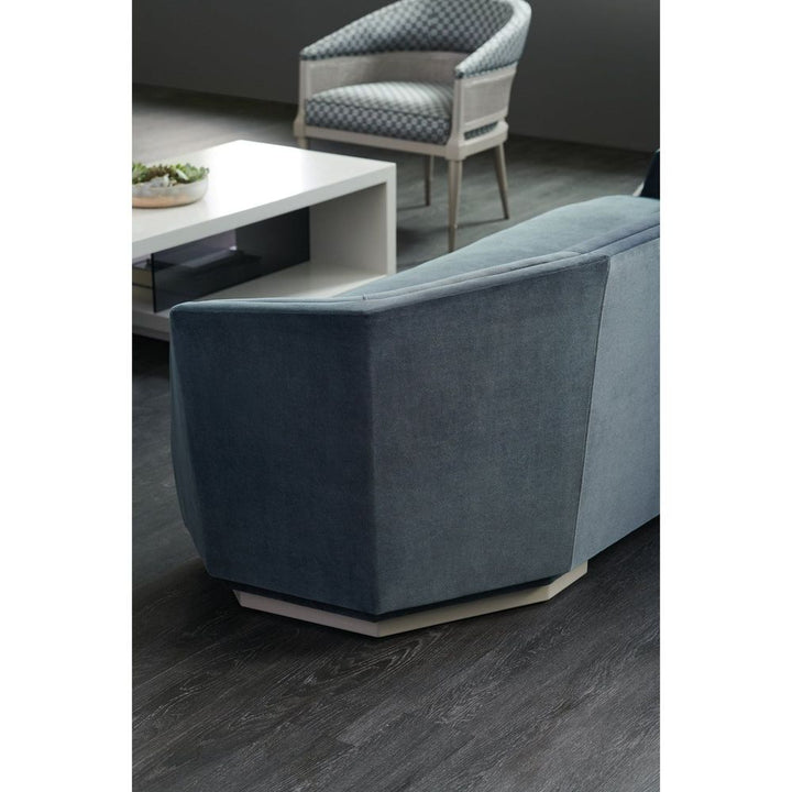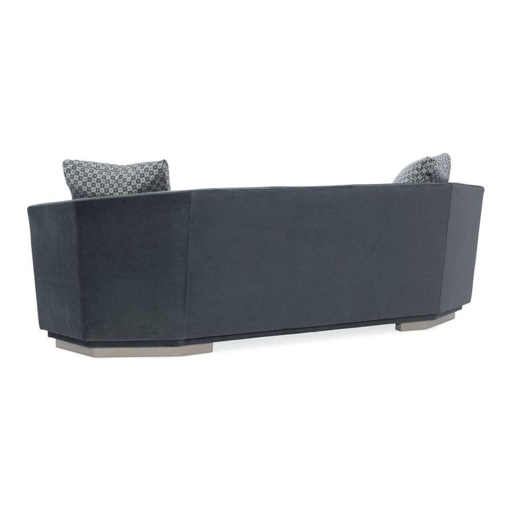 Intriguing from every angle, this statement-making sofa offers the look of contemporary design yet gives you the feeling of being cradled within its arms. Its octagonal shape draws inspiration from the facets of a diamond as well as modern architecture. It sits elevated upon a wood plinth base, replicating the octagonal shape above, for an aesthetic of true originality. Enclosed within the sanctuary of this sumptuously upholstered piece you can finally relax in style.