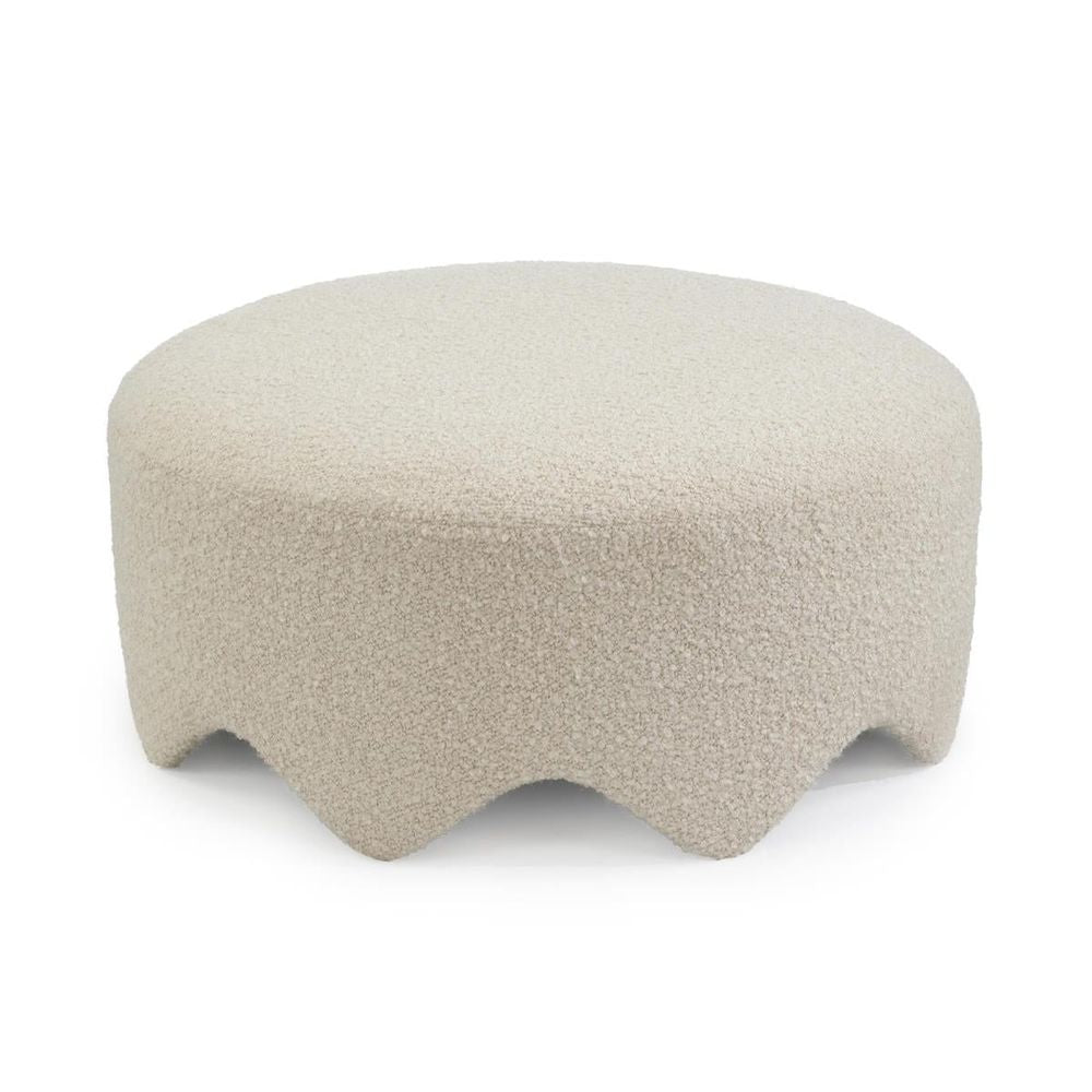 Description: The fluctuations of the Ashby Ottoman rise and fall like the ocean tide, introducing a captivating sense of motion to an interior space. Constructed from beech wood and upholstered in Revival D1909 Parchment Fabric-3043, the Ashby Hassock showcases a tasteful ivory shade and rich texture that elegantly blends with a variety of different design styles.