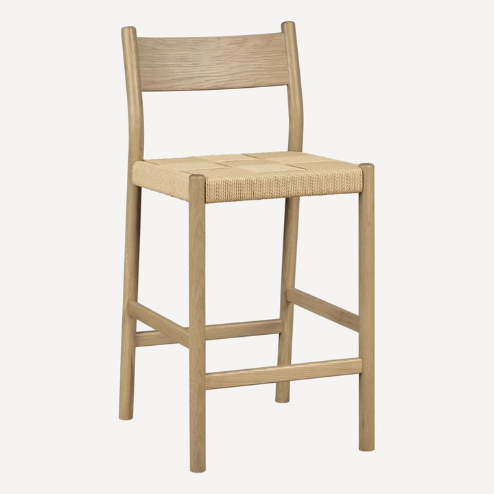 Description: The Asher Counter Stool is inspired by minimalist Danish design, featuring a solid American oak frame with clean, straight lines. The woven Danish cord seat adds texture and comfort, creating a timeless piece that enhances any dining space with its understated elegance and natural materials.