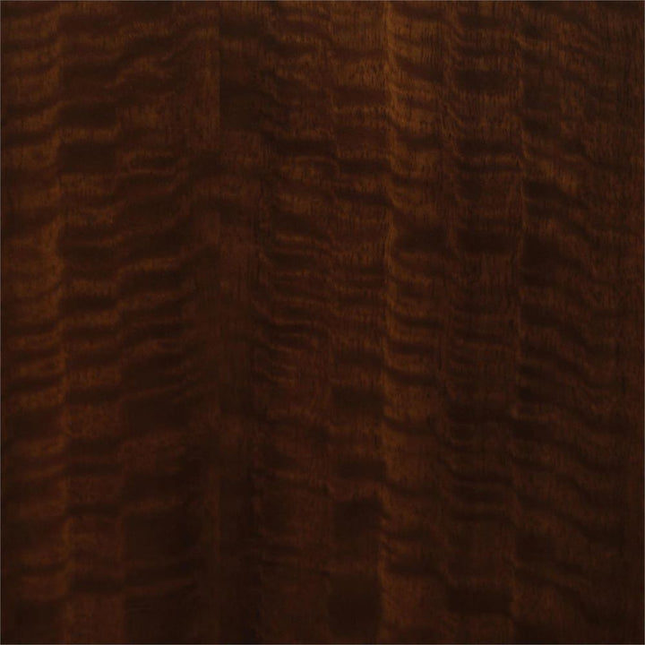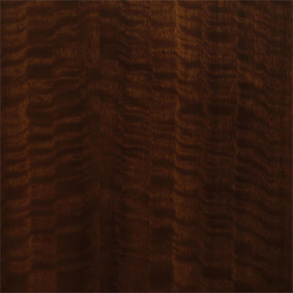 Description: This square pedestal in figured, smoked eucalyptus veneer pairs with a crystal glass block top.