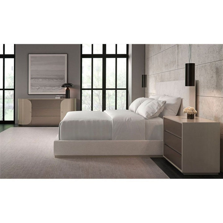Features: Fully upholstered bed.Plinth base in Pearl.Pairs with M133-421-022 and M133-421-066