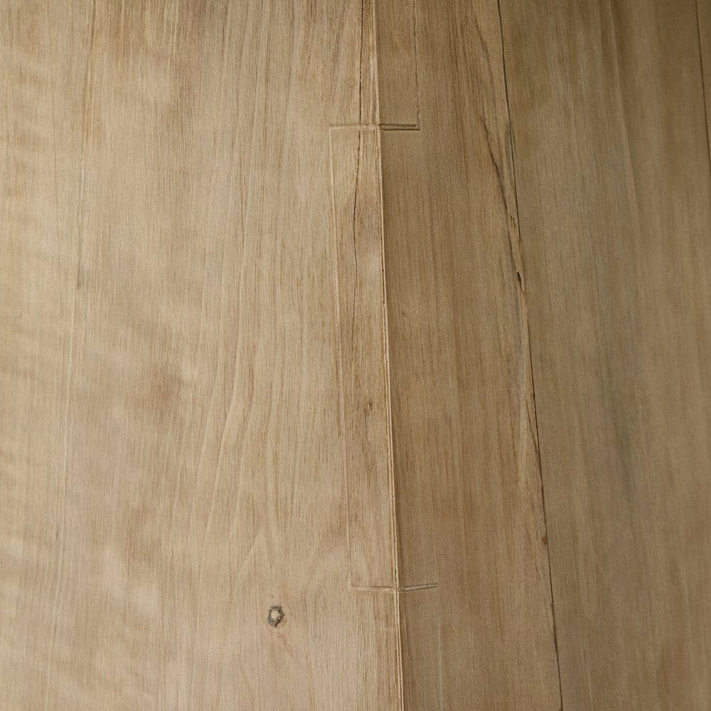 Bleached alder shapes a streamlined console table, with angular lines and wide proportions for a clean look with substance.