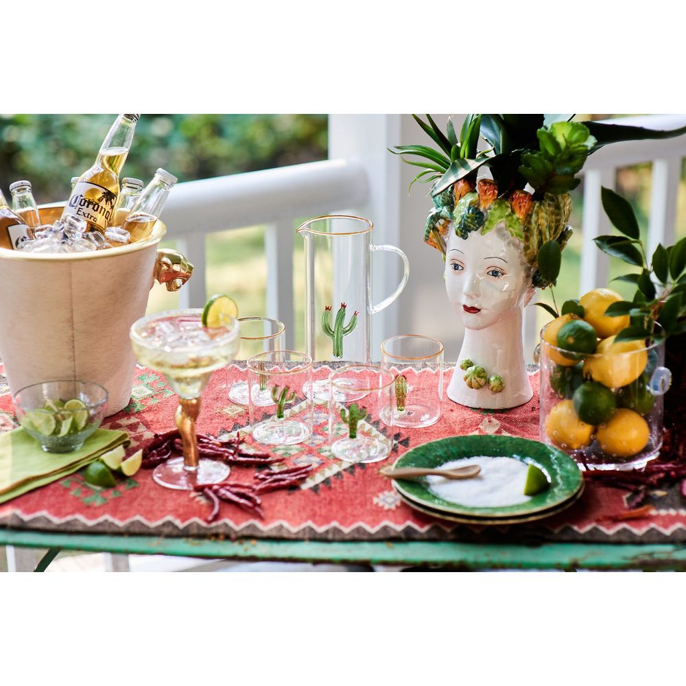 Description: Imagine enjoying a refreshing drink in these adorable cactus glasses. Each glass in this set has a different cactus applied on the glass. Set of 4