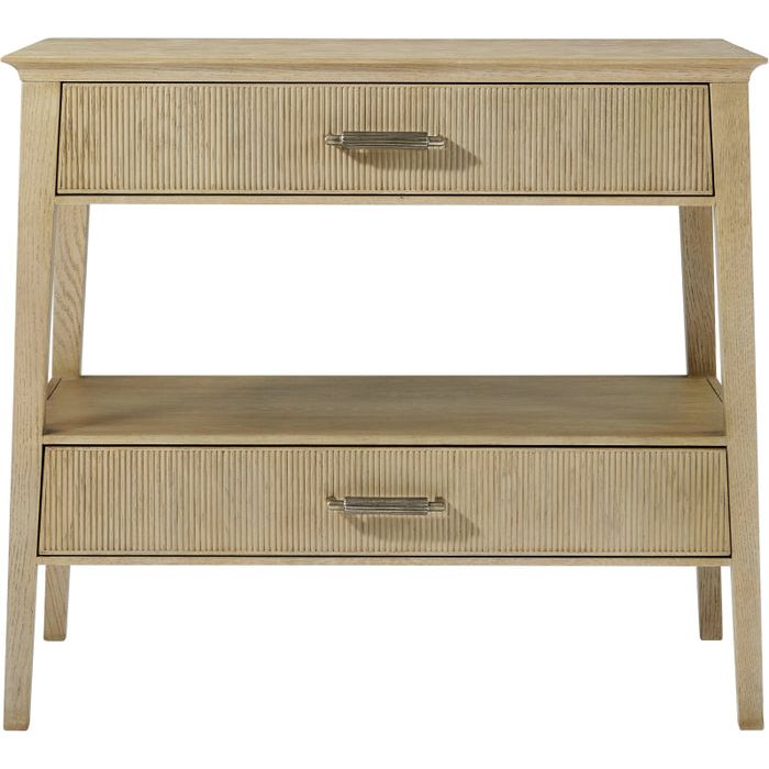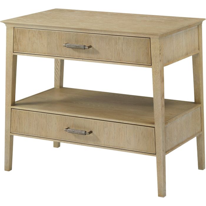The handcrafted Balboa Nightstand features a sophisticated tapered silhouette with 2 drawers for optimal storage. Beautifully complemented by reeding and dark nickel hardware. Finished in Coastal Grey.