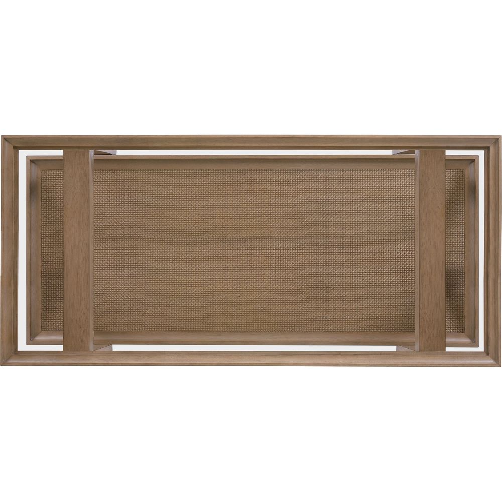 Description: Blending organic textures and neutral tones with a refined minimalist silhouette, the stylistically versatile Ballad Cocktail Table exudes a natural luxury. The transparent tempered glass insert top reveals the lower fixed shelf with cane insert. The frame of the table is Quartered and Cathedral-Cut White Oak Veneers in a light earthen-toned finish.