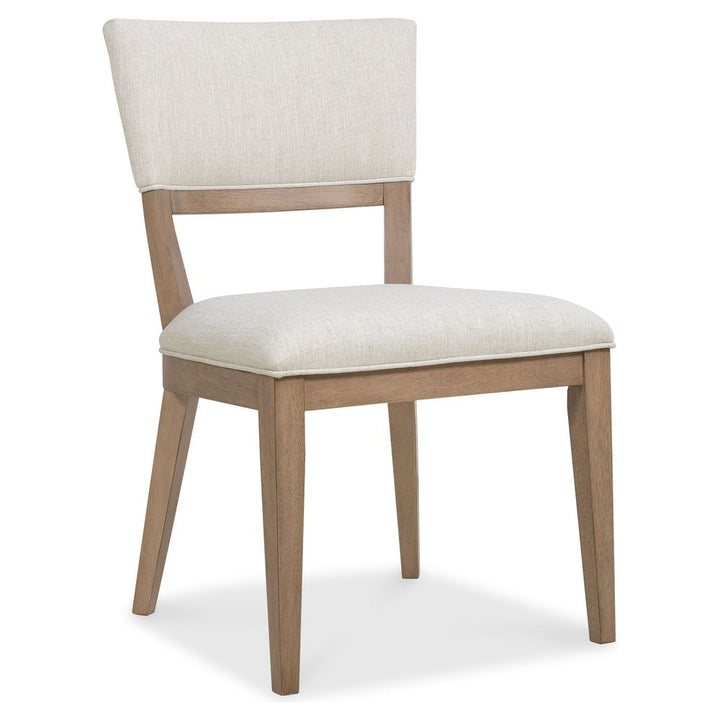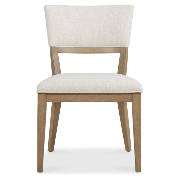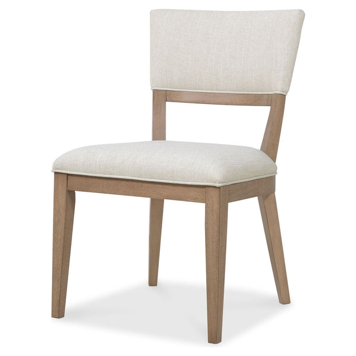 Description: Blending natural textures and neutral tones with a refined minimalist silhouette, the versatile Ballad Upholstered Side Chair offers swanky yet comfortable seating to enhance your dining experience. Offering a fabric seat and back covered in Savile Oatmeal, a Polyester-Linen blend with a two-tone striation and welt trim, the frame is crafted of Quartered and Cathedral-cut White Oak in a light earthen-toned finish.