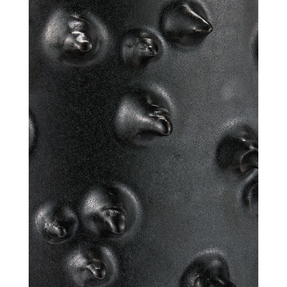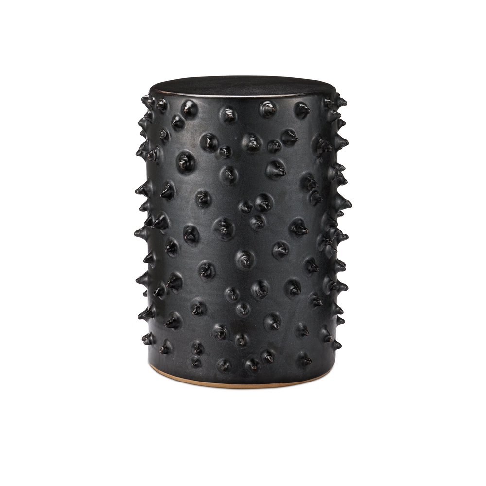 Description: The Baltz Black Accent Table is made of ceramic covered in a rich black glaze. The protrusions that form the dimples on the sides of the table are done by hand by a group of women artisans who live at the border of Burma and Thailand. Then the black glazing is applied. This table is weather-worthy so it can be placed outside.