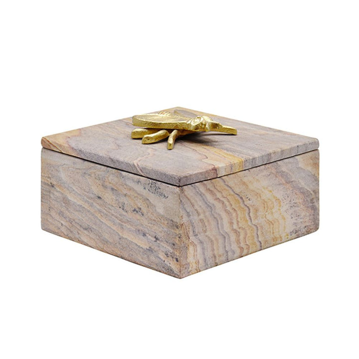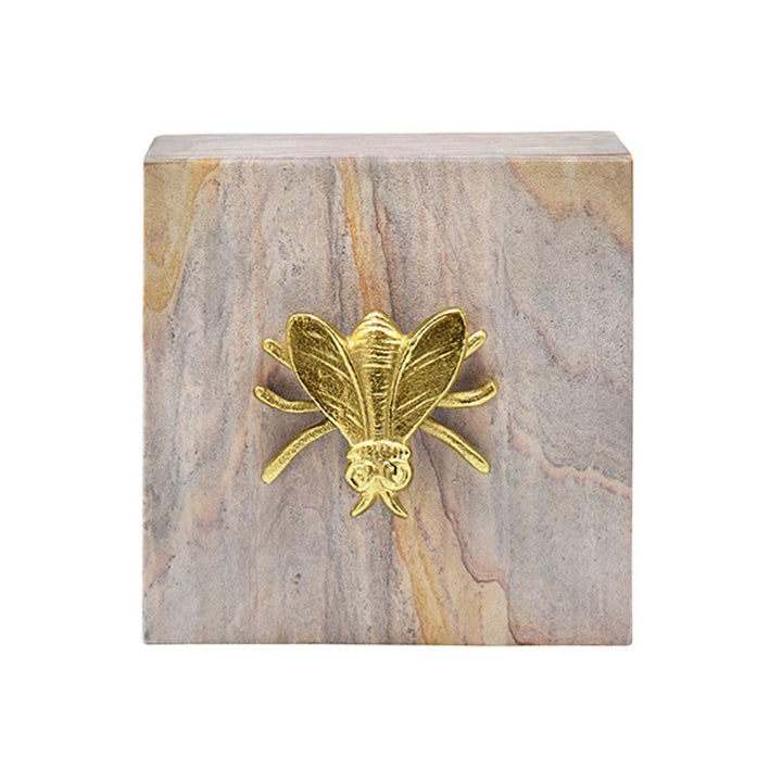 Description: GOLDEN BROWN BIDASER MARBLE BOX WITH BRASS BEE TOP *Marble is a natural stone and will vary slightly in color, pattern, and veining.