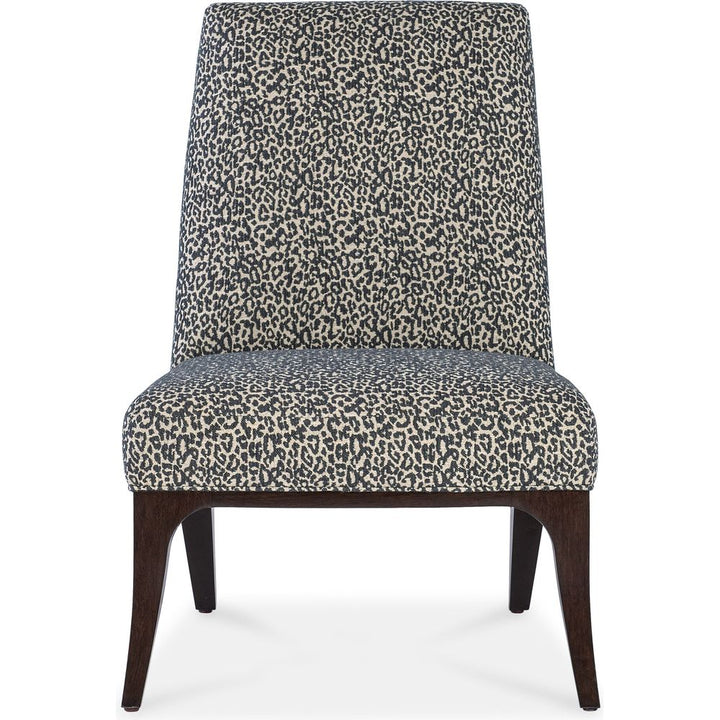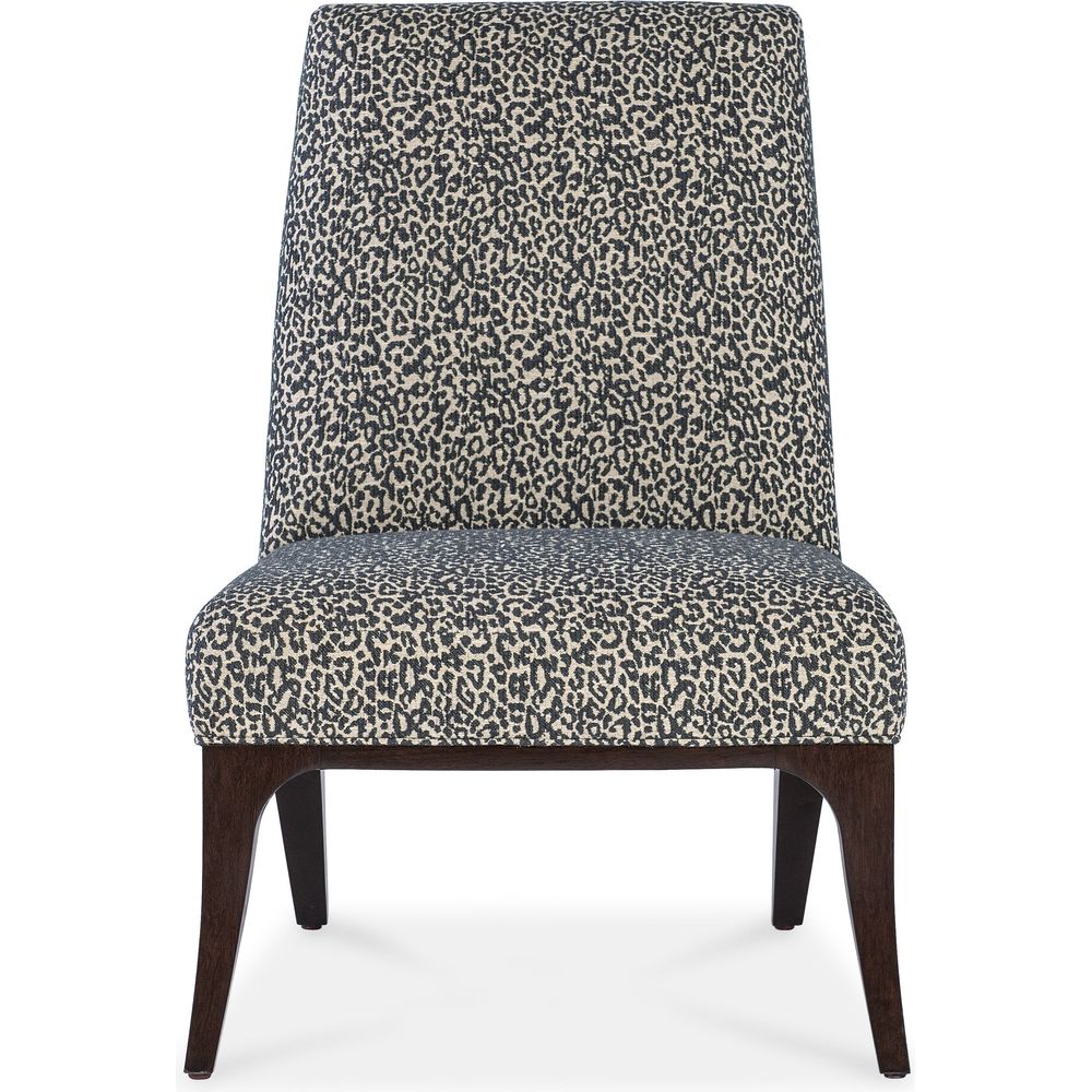 Description: Enjoy the sleek and plush tight-seat, tight-back Bella Slipper Chair with a wood-framed curved back in pairs in your living space, as a dining host chair or a single accent chair. Finished in Caviar, a deep translucent tone on rich Cathedral Cherry Veneers. The luxurious fabric is Merrimac Ebony.