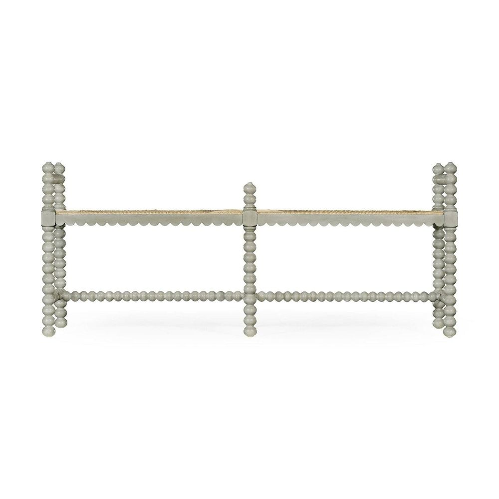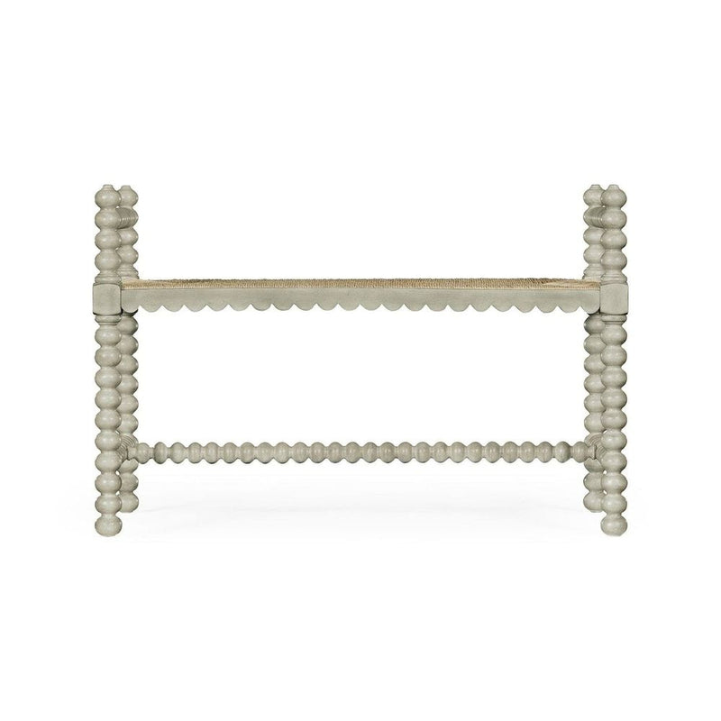 Bellingham single, double bench constructed of acacia and finished in a country grey with a fine rush seat is perfect at the foot of a bed. Taken from a family piece, this bench and the single version has many uses. Great in front of the sofa and also in the hall or even on a landing.