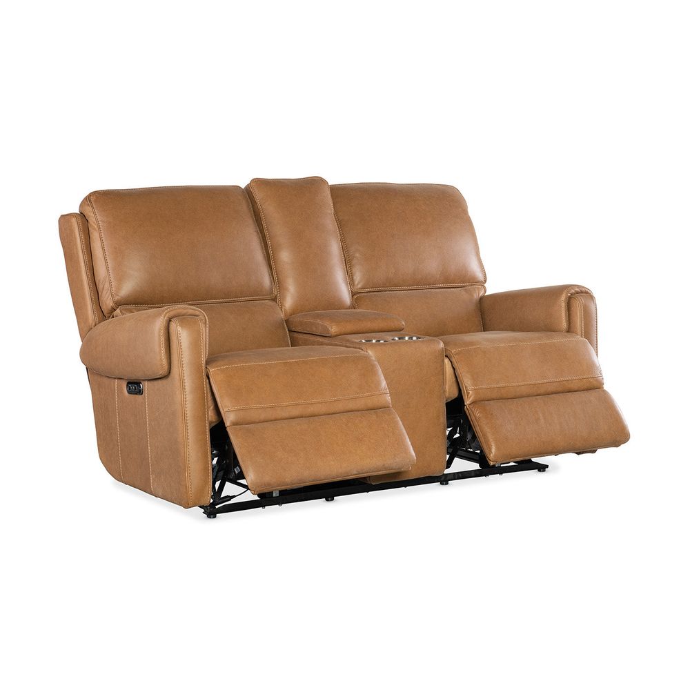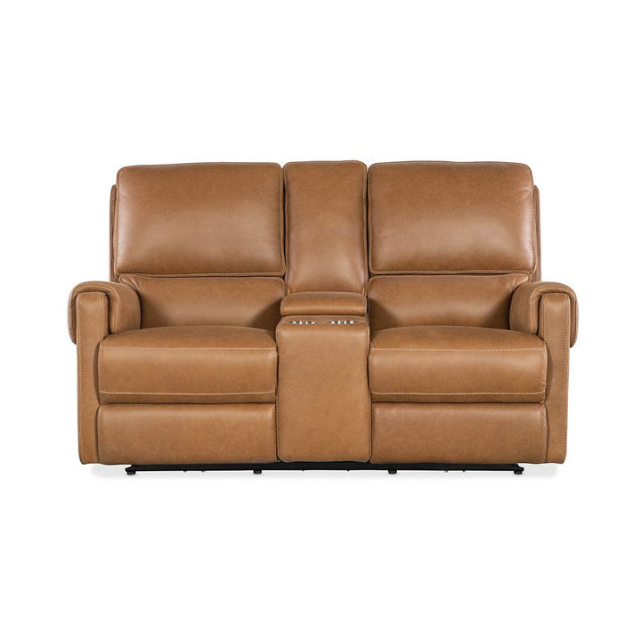 Bishop Console Loveseat with Power Recline & Power Headrest - Brown