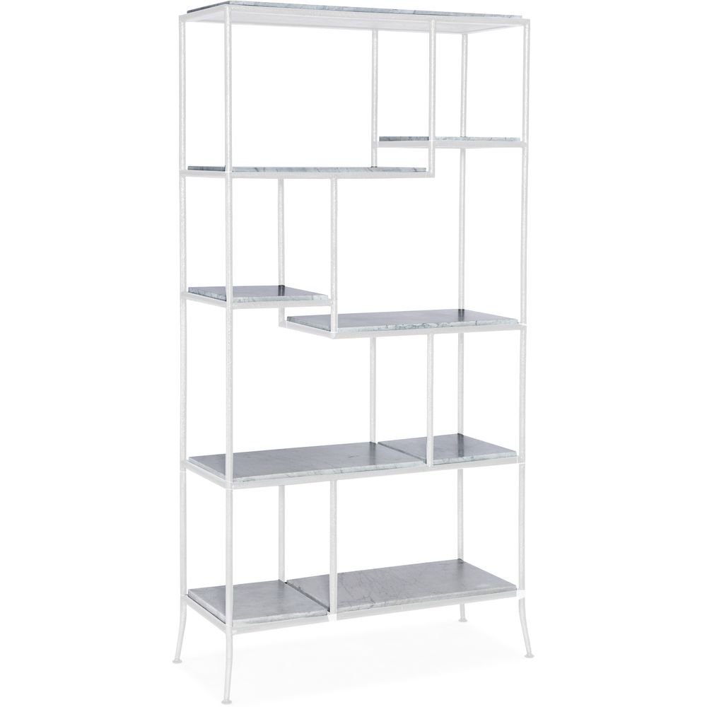 - Finish:Blues,Dark gray textured metal frame with Blue Forest stone shelves