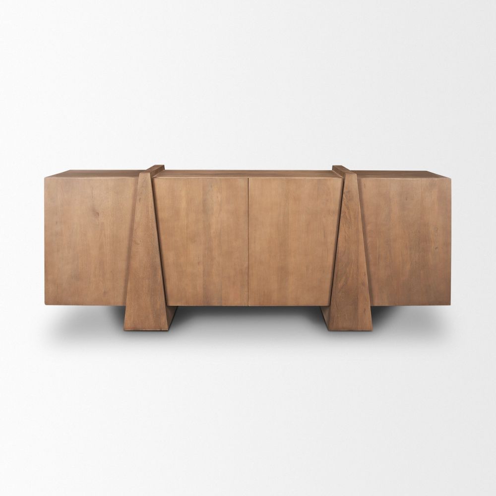 Feature#3: Angular support legs and geometric shapes come together to form this stunning sideboard, creating storage solutions while contributing to the overall design aesthetic.