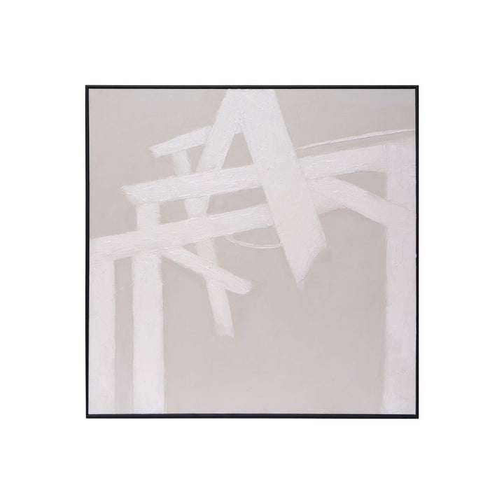 Description: This contemporary painting is created with monochromatic brush strokes for a bold and stylish design. Features a black finished wood floater frame. Each artwork is hand-painted and will feature slight variations that make every piece unique.