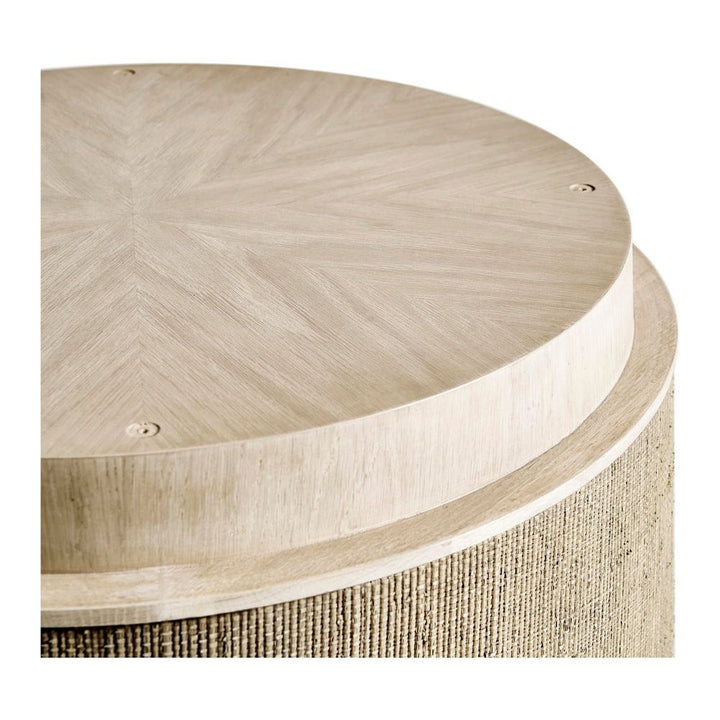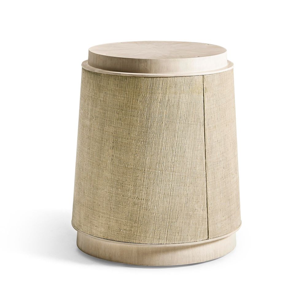Wood: Oak Solids and Veneers, Base is made from Oak Veneers finished in White Washed Oak Wrapped in Grass Cloth (GRC), White Washed Oak (WWO) Grass Cloth (GRC)