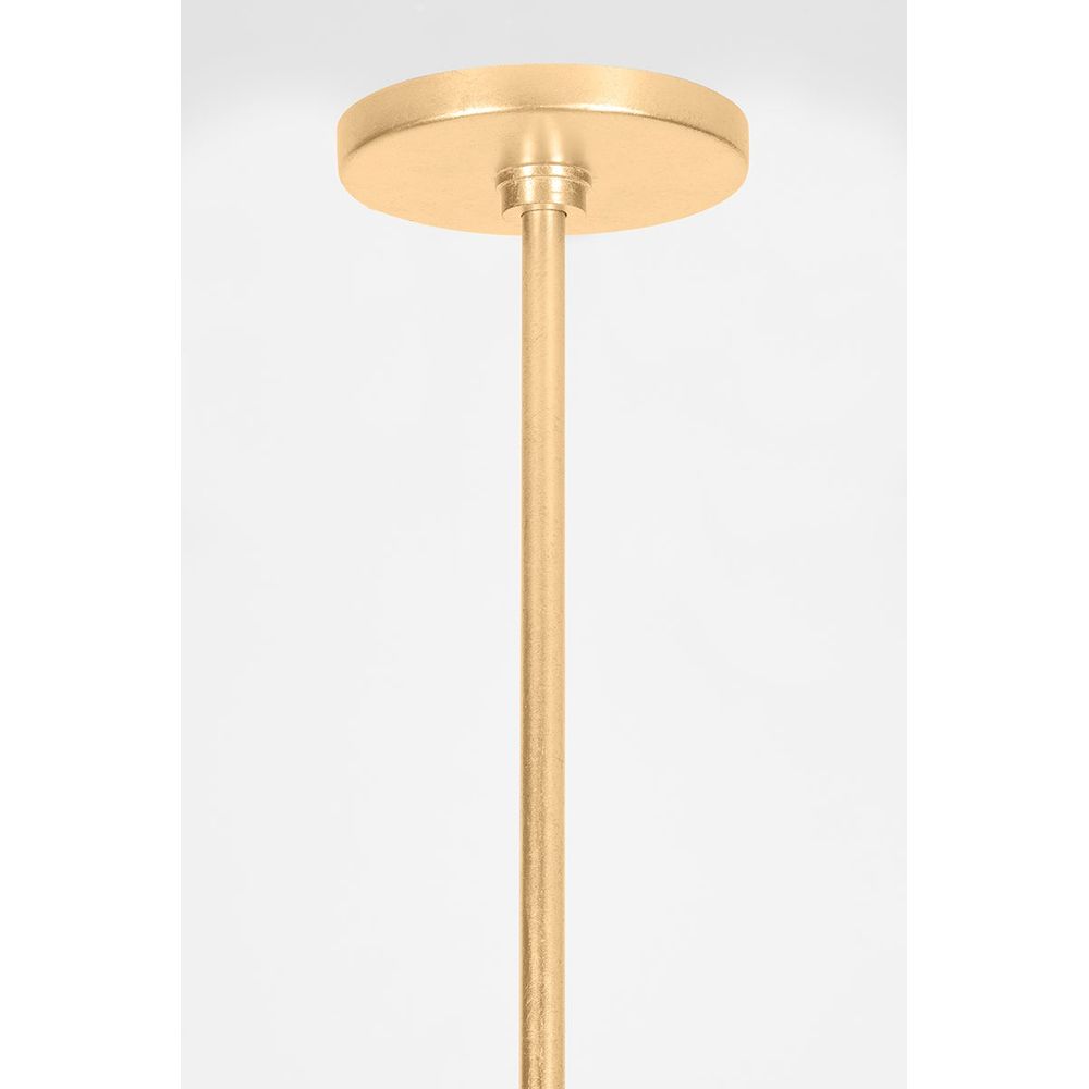 Overlapping petals of Vintage Golf Leaf swirl to form an artful yet sophisticated floral shade that draws the eye from any angle. Light from the opal glossy glass globe reflects off the petals to fill a space with a warm, golden glow. Brookhaven is available as a flush mount and pendant in two sizes.