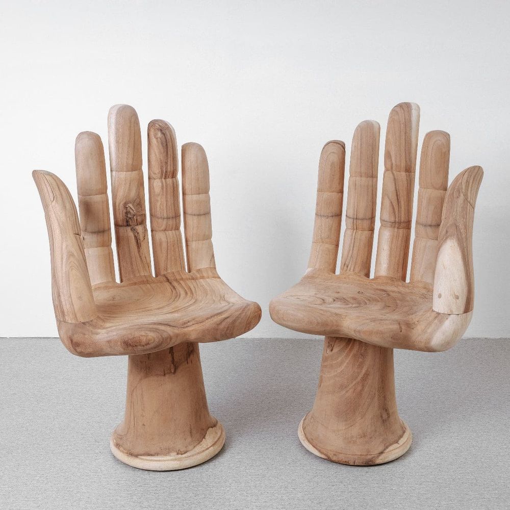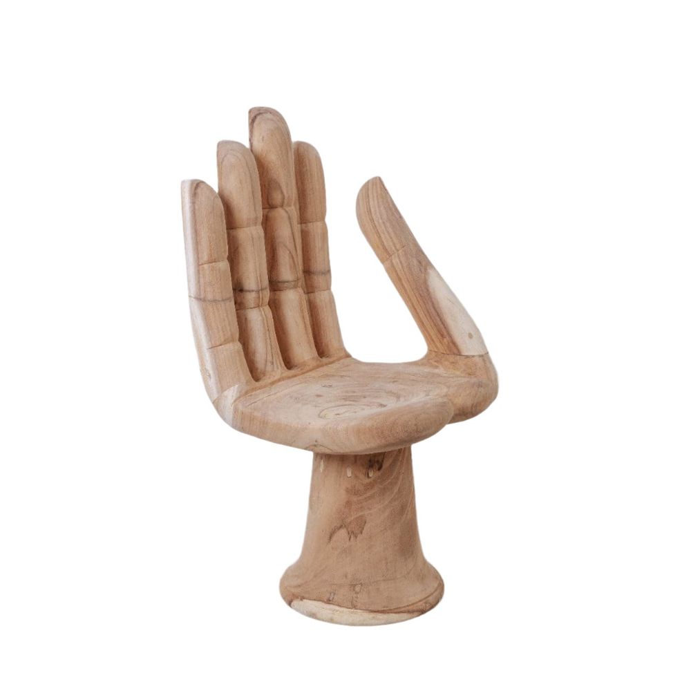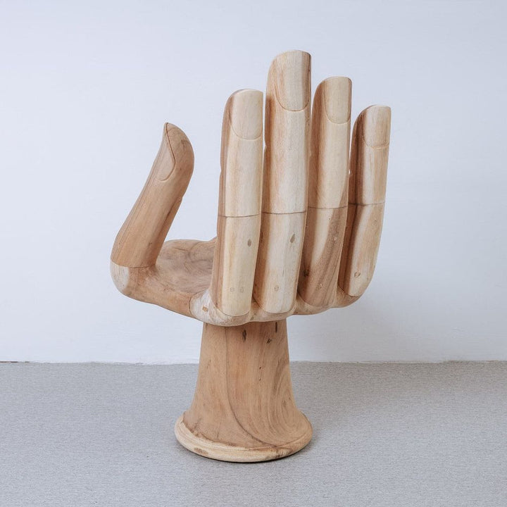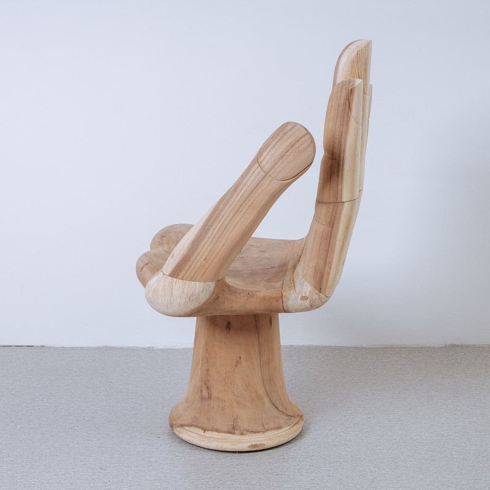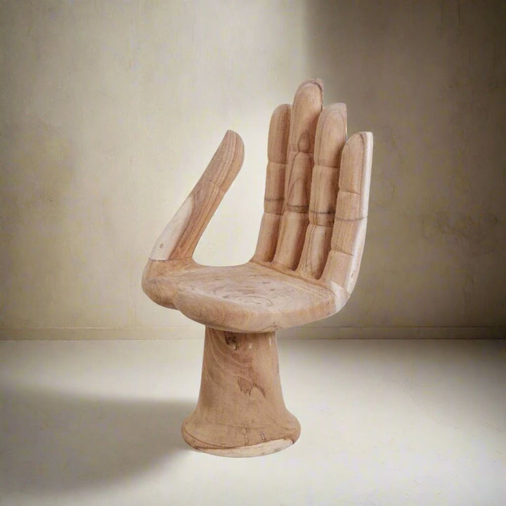 Bring some om to your home with this unique Mudras Chair. Expertly crafted from Suar Wood this chair is designed to look like a hand in a peaceful meditative state. The palm provides sturdy support while the fingers reach and curve to provide added comfort and support. Available in left or right facing.