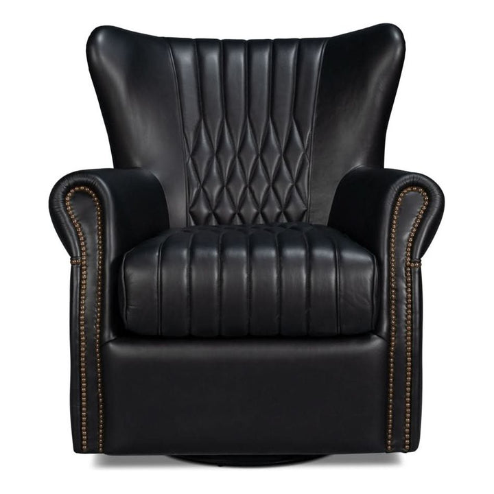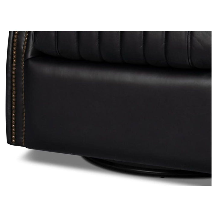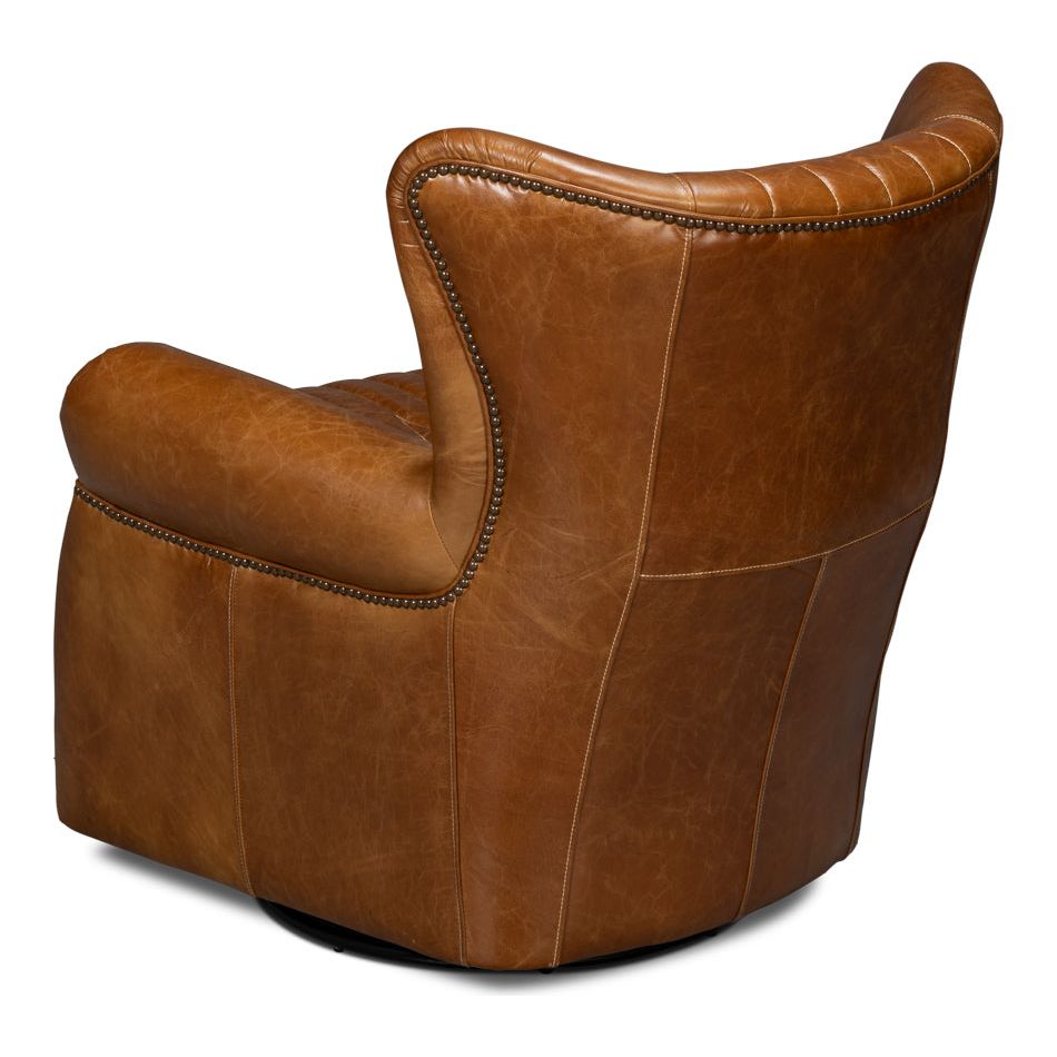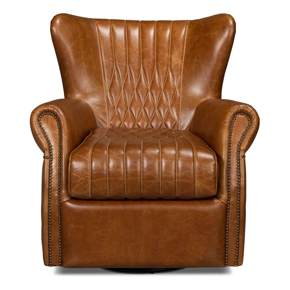 Experience unparalleled luxury with the Bugatti Leather Swivel Chair. Crafted with meticulous detail, this traditional masterpiece boasts a wooden frame, elegant nailhead trim and Leather. Elevate your living space with the classic allure of Bugatti.
