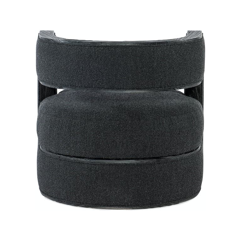 The Burke Accent Chair is a vintage modern inspired design with an updated take on the classic club chair. The circular chair features a subtle curved, wing-back seat design. This accent chair features a rustic, solid wood base hiding a 360-degree swivel. The swivel accent chair is covered in a charcoal velvet with high-low effect for subtle texturing and vintage-velvet effects. Ships fully assembled. The durable seat features supportive webbing construction and 35 density A-grade foam. The seat back features 18 density foam.