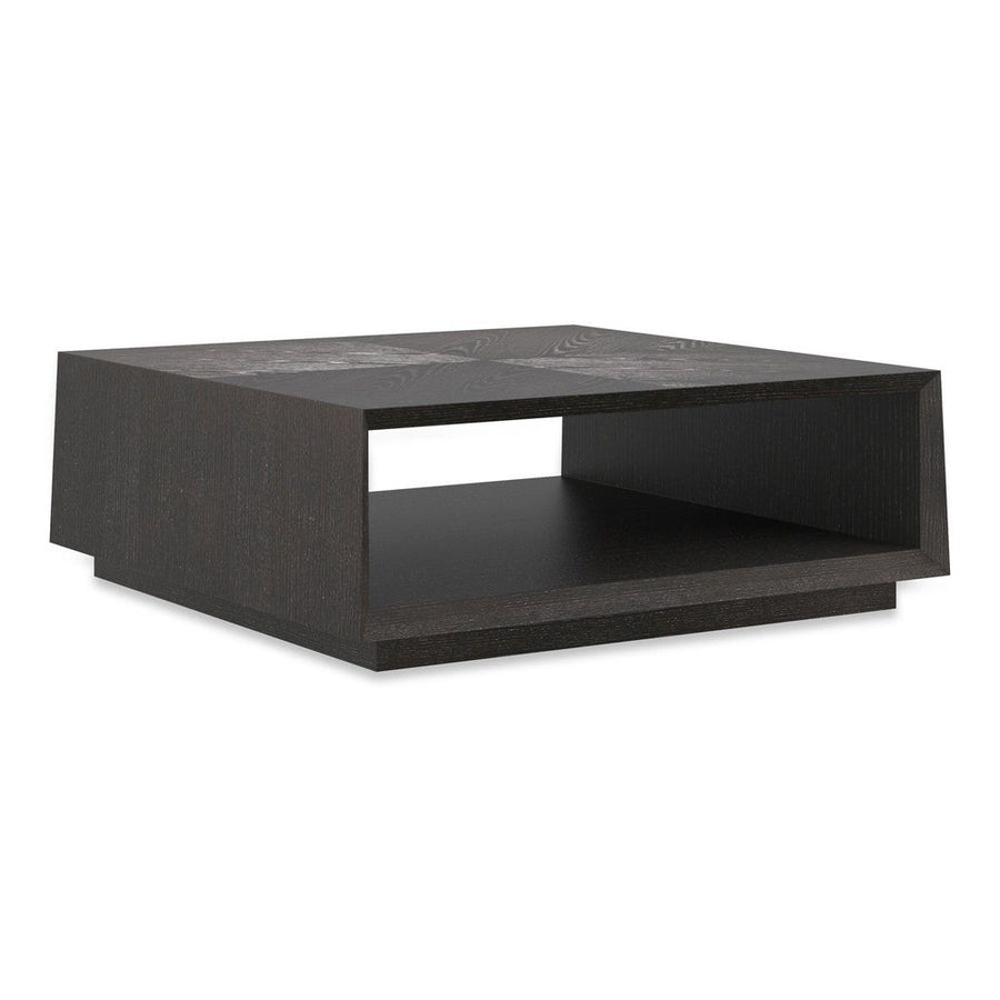 As the center of your conversation area, the Boxcar cocktail table lends authentic warmth and character. Its clean geometric lines are brought to life with the organic beauty of Black Stained Ash veneers formed in an artistic alternating pattern across the tabletop. Designed with an open storage area, this cocktail table's timeless form is bolstered by thoughtful functionality creating just the place to stow magazines or a favorite knitted throw.