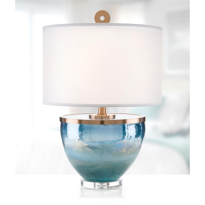Caribbean Blue Glass Table Lamp - Bronze,Clear,White