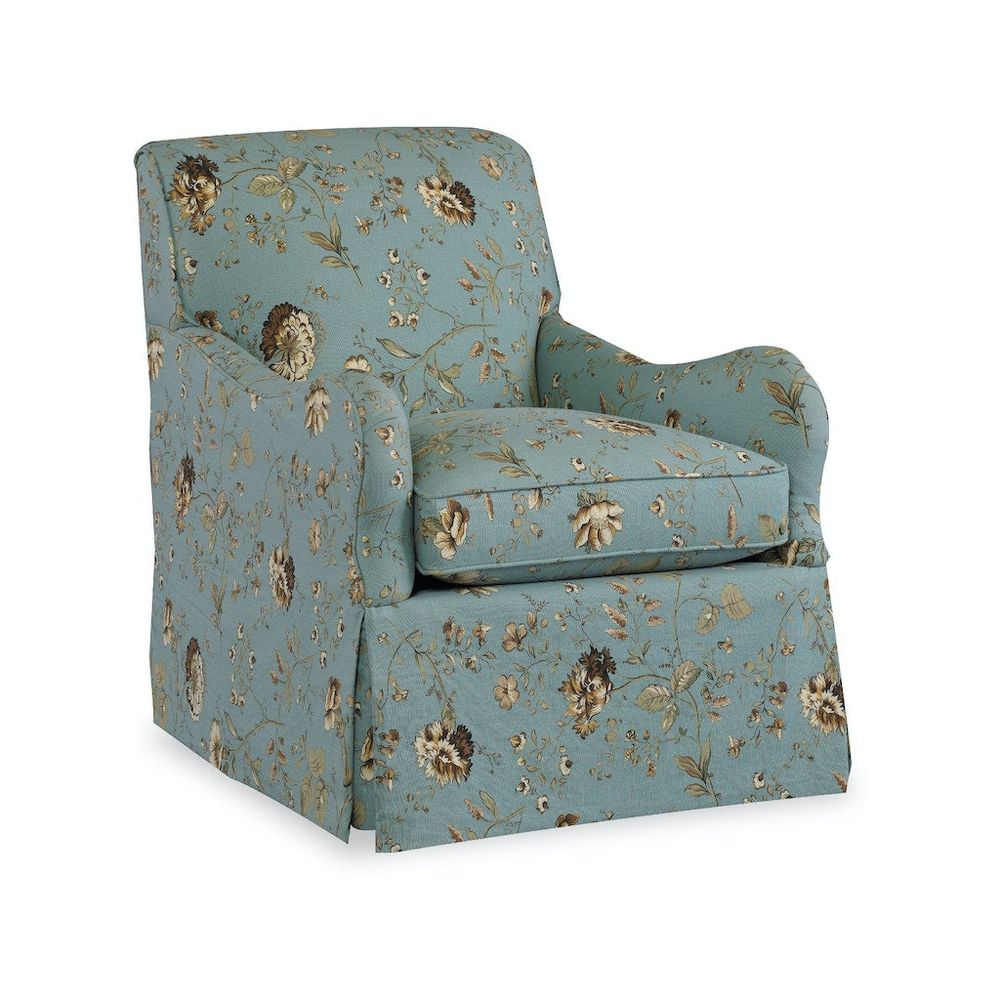 This swivel glider comes standard with a waterfall skirt; classic seat cushion and welt trim only. Go for a spin in our wide selection of swivel chairs. Multifunctional to their core and beautiful from every angle, these space-saving pieces are ideal for creating a conversation area in a living room or casual family room. With styles ranging from traditional to modern, their fresh designs are sure to keep the conversation moving.