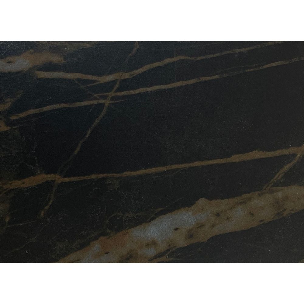 Century Double Extension Dining Table Noir Desir Ceramic Top, Black Powder Coated Steel Base