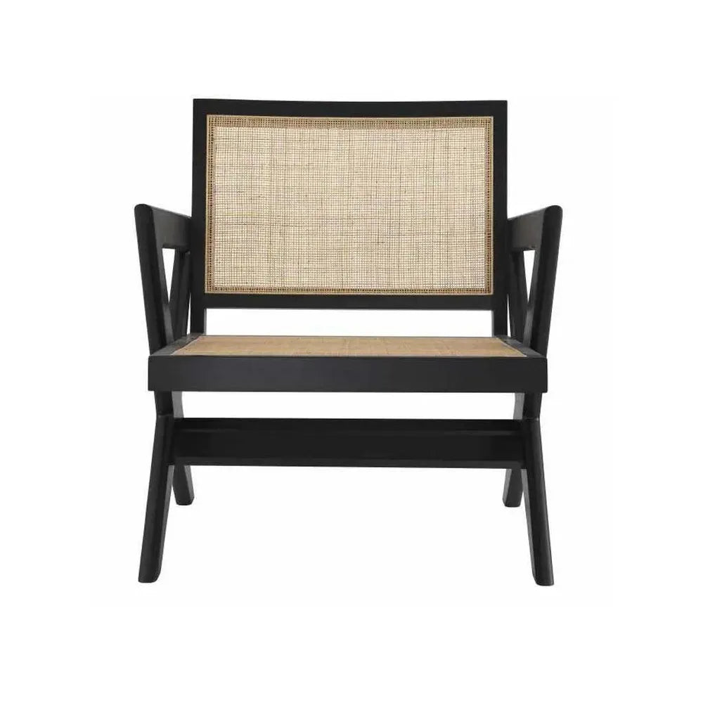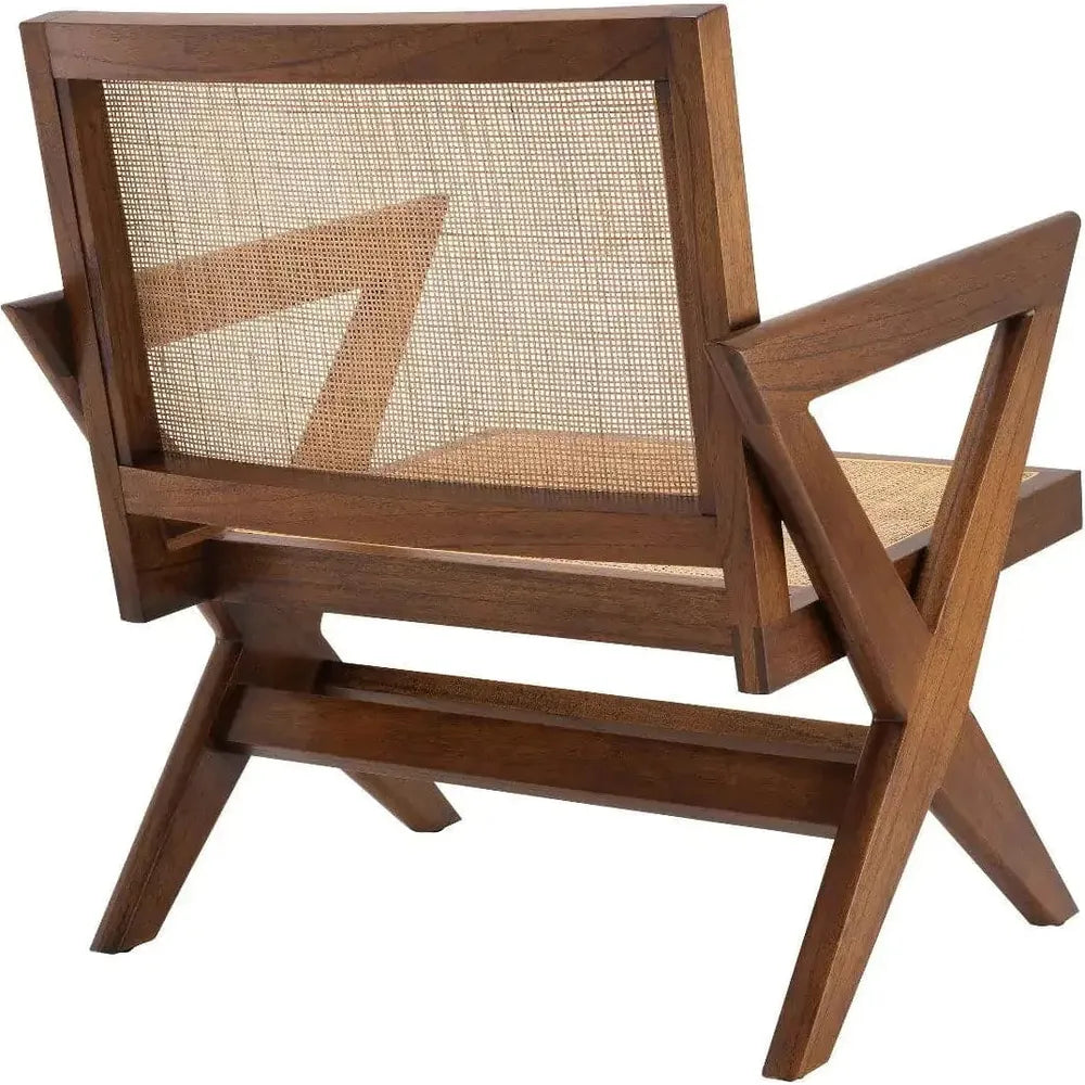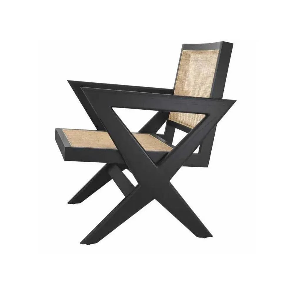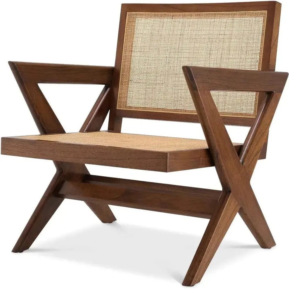 Created to celebrate the timeless beauty of Chandigarh furniture from the 1950s and 1960s, the classic brown Augustin Chair is a mix of simplicity and craftsmanship. With a solid wood frame, this sturdy yet elegant armchair with X-shaped legs reminds one of iconic minimalist designs. Handwoven rattan cane adorns the seat and backrest.