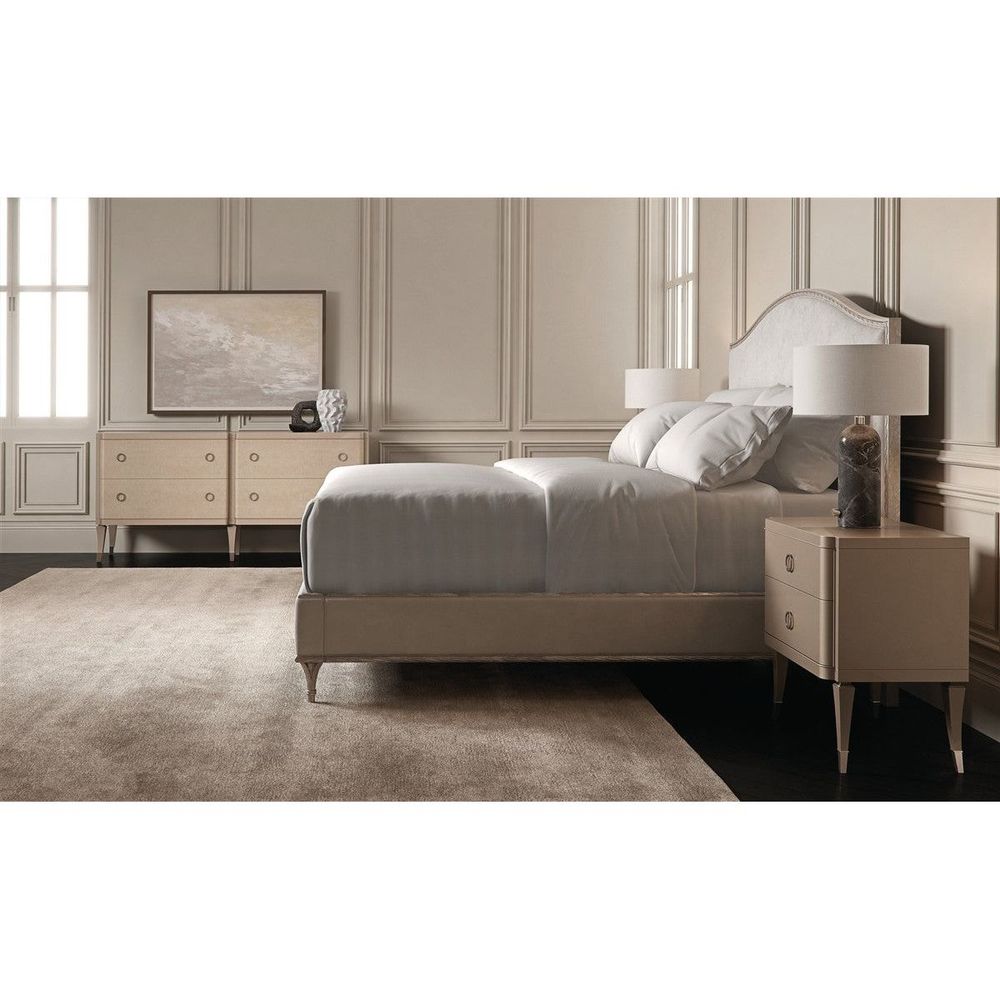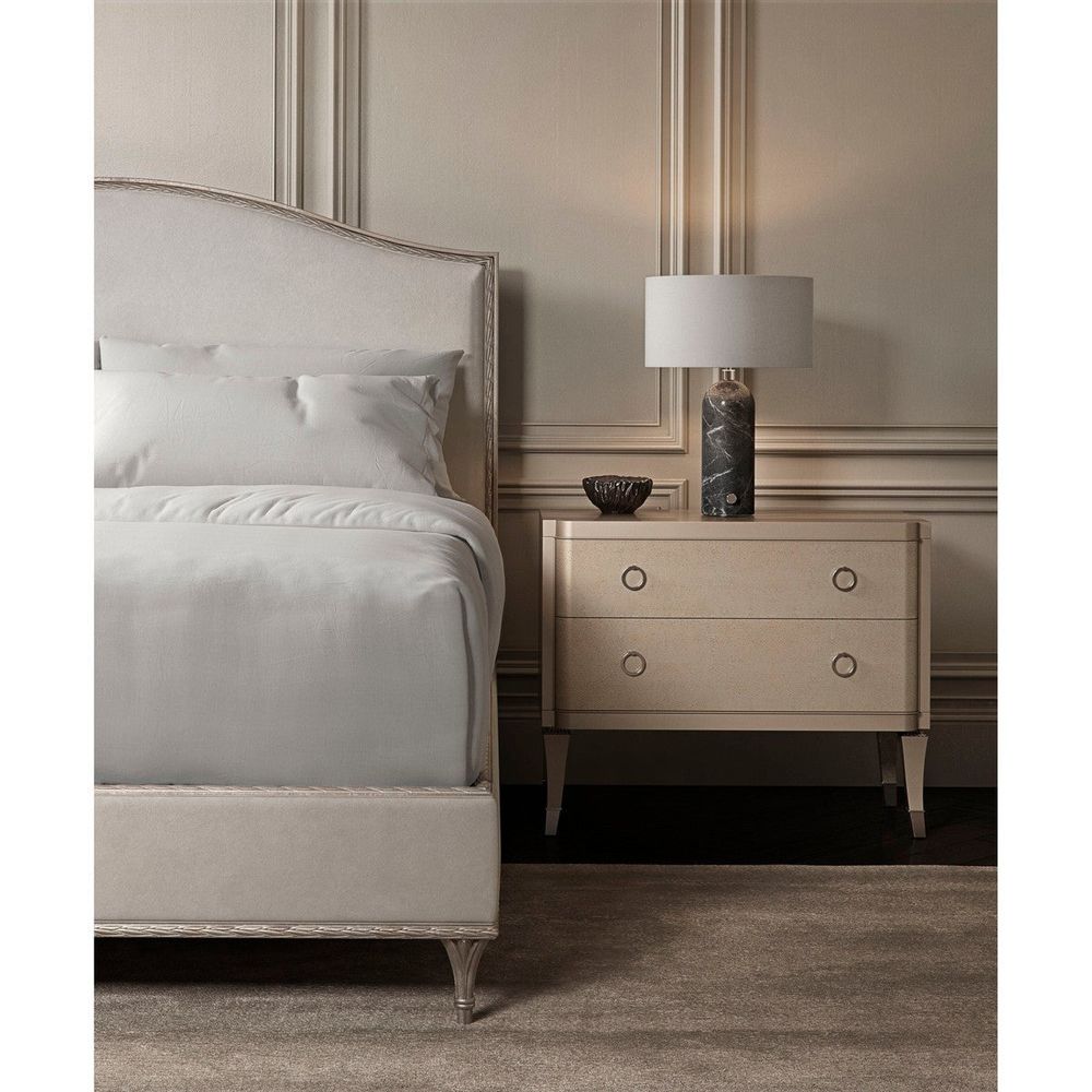 Features: Fully upholstered bed.Exposed wood finished in Oracle Silver Leaf.Pairs with CLA-420-011, Cla-420-061, CLA-420-066