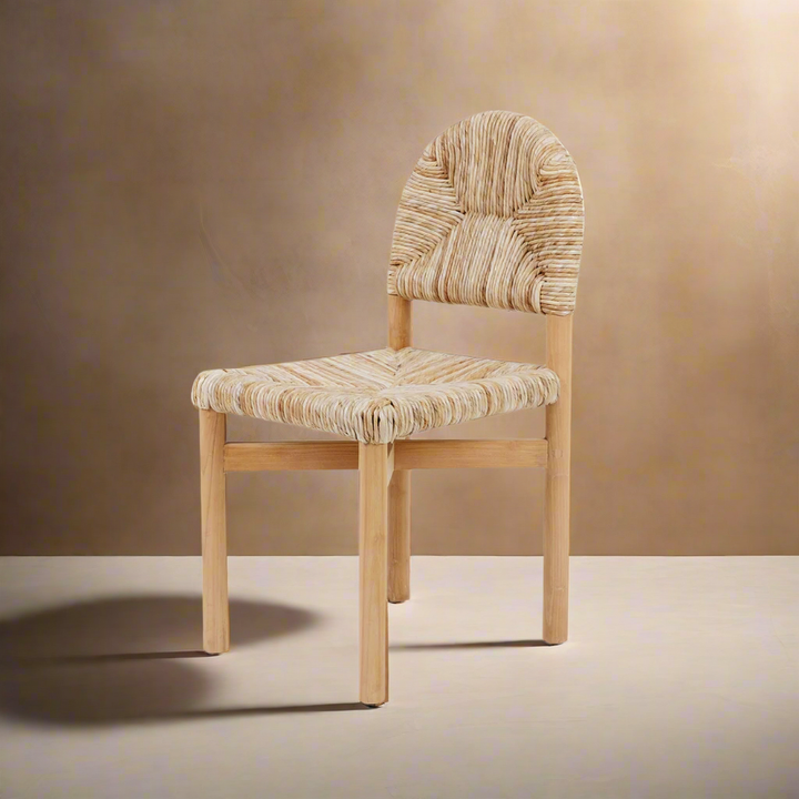 Expertly crafted from teak and woven pandan leaves, this chair has a subtle tropical style ideal for contemporary and bohemian style spaces. The design, which is inspired by Charlotte Perriand's mid-century designs, uses a solid teak frame that ensures a sturdy seat while the woven seat and back provide the perfect combination of comfort and support.