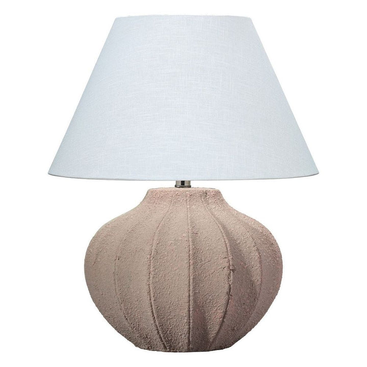 The Clamshell Table Lamp is the perfect mix of coastal inspiration with rustic textures. The imperfect, chipped and crackled finish enhances the highs and lows of the ribbed shape. A white linen drum shade is the perfect finishing touch to add a light, coastal fabric to this beachbound silhouette.