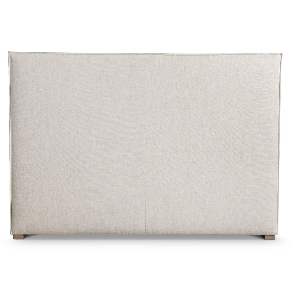 Description: The Colton panel bed crafts a modern organic look with an upholstered headboard and footboard that feature unique double welt flanges. The side rails are also upholstered, softening the sleek straight lines of the design. Four wood feet are finished in Aurum.