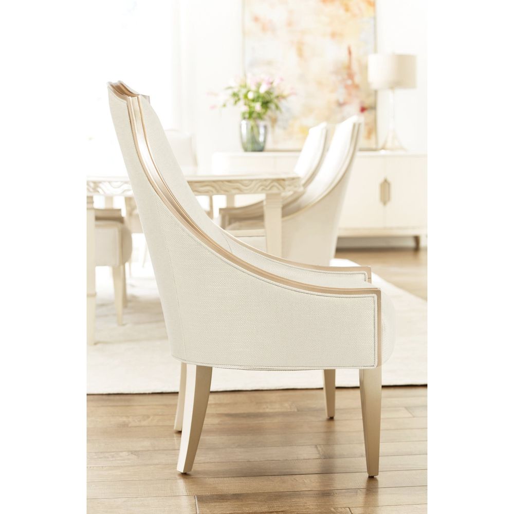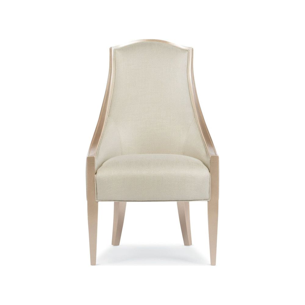 The Adela Side Chair is the perfect accompaniment to formal dining spaces. This chair easily pairs with dark or light woods or contemporary glass tables because of its statuesque lines, suave metallic Blush Taupe frame and cream tweed boucle fabric. Gracefully curved and plush for comfort, this chair beckons you to take a seat.