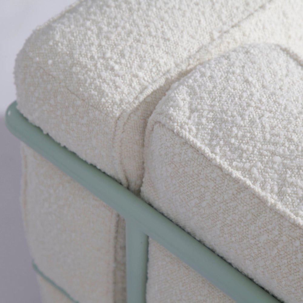 - Materials: steel frame, boucle
